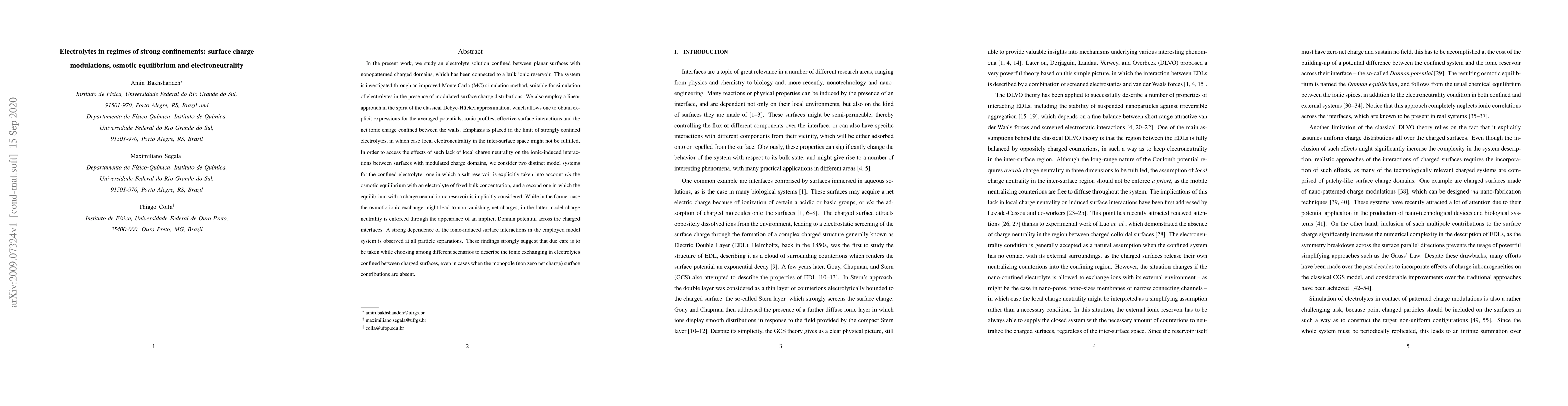 This paper investigates electrolyte solutions confined between charged surfaces using Monte Carlo simulations and linear Debye-Hückel approaches, focusing on regimes of strong confinement. It highlights the impact of local electroneutrality violations on ionic-induced surface interactions, comparing scenarios with explicit salt reservoirs and implicit Donnan potentials.