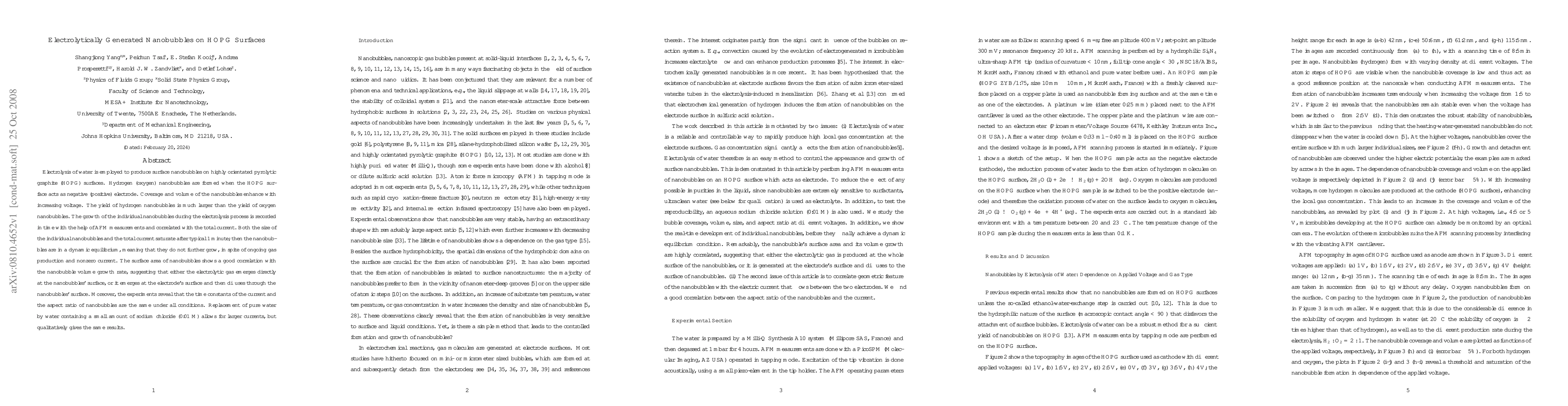 This study investigates the formation of hydrogen and oxygen nanobubbles on HOPG surfaces via electrolysis, finding that the yield of hydrogen nanobubbles is significantly higher. AFM measurements show that nanobubbles reach a dynamic equilibrium after 1 minute, with size and current saturation, indicating gas diffusion through the nanobubbles.
