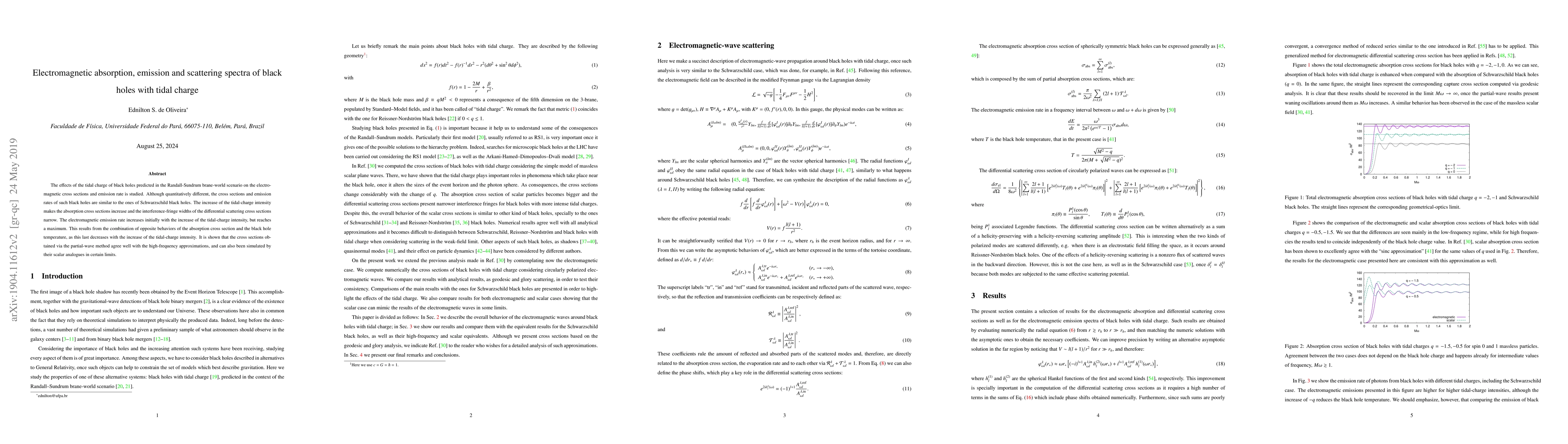 This paper investigates how tidal charge in black holes, as predicted in the Randall-Sundrum brane-world model, influences electromagnetic absorption, emission, and scattering spectra. The study finds that while quantitatively different, the electromagnetic cross sections and emission rates of tidally charged black holes resemble those of Schwarzschild black holes, with increasing tidal charge intensifying absorption and narrowing scattering cross sections.