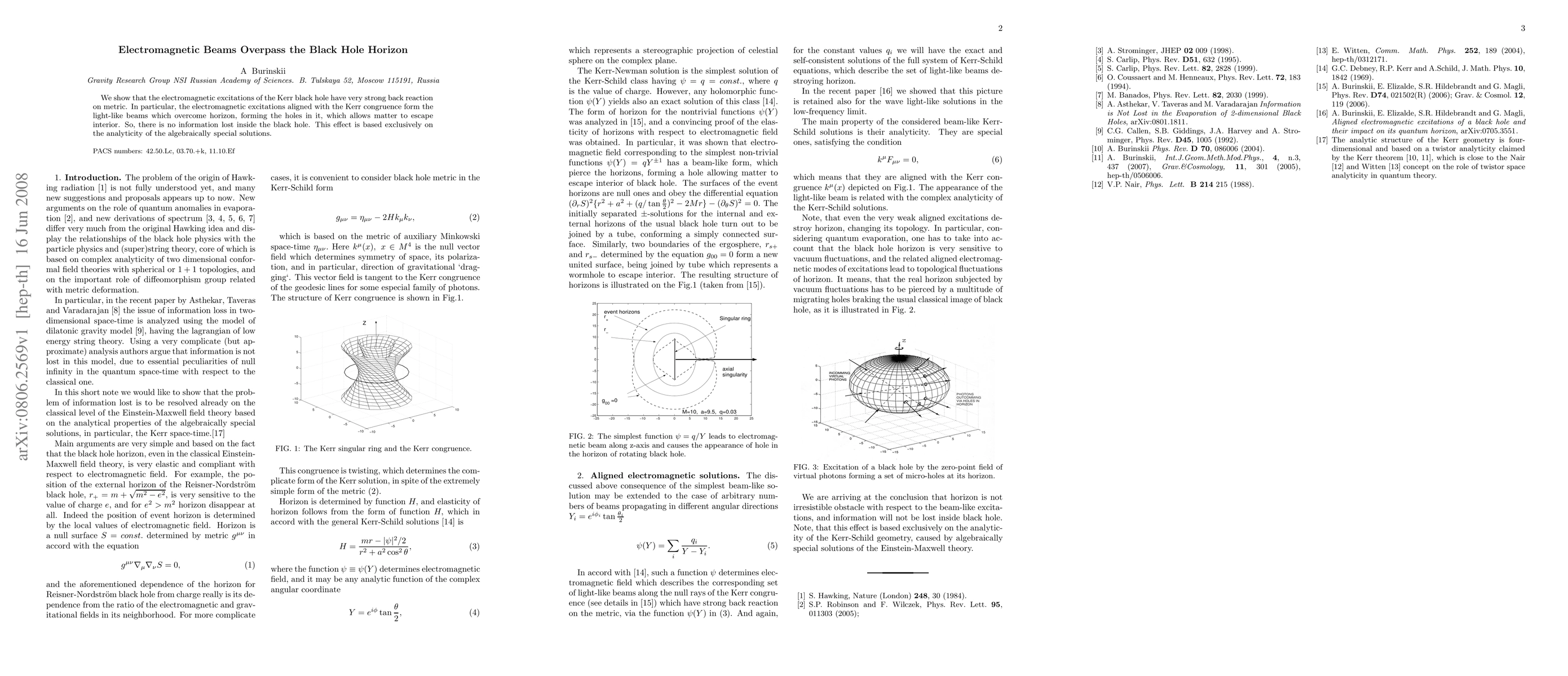We show that the electromagnetic excitations of the Kerr black hole have very strong back reaction on metric. In particular, the electromagnetic excitations aligned with the Kerr congruence form the light-like beams which overcome horizon, forming the holes in it, which allows matter to escape interior. So, there is no information lost inside the black hole. This effect is based exclusively on the analyticity of the algebraically special solutions.