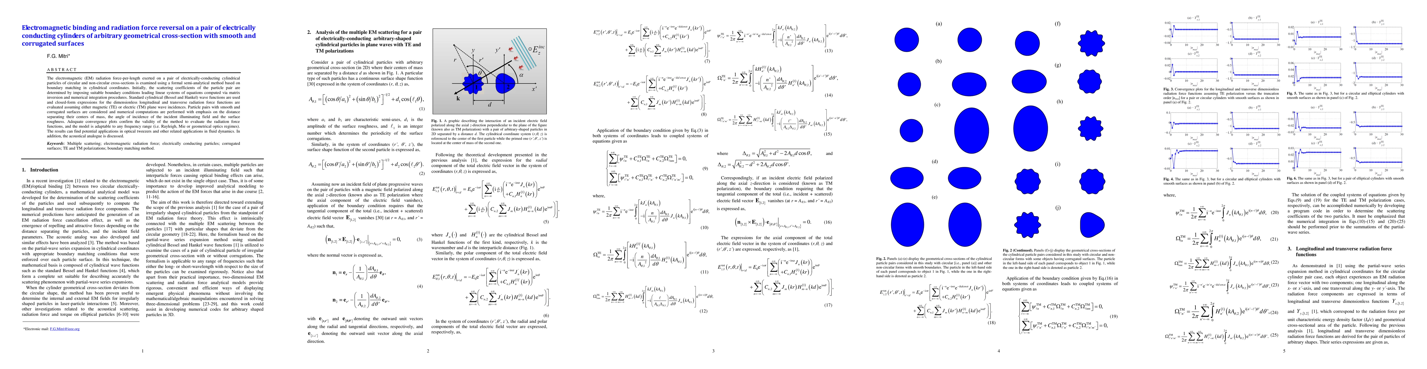Researchers developed a method to calculate electromagnetic radiation force on pairs of electrically conducting cylinders with varying surface geometries, shedding light on its applications in optical tweezers and fluid dynamics.