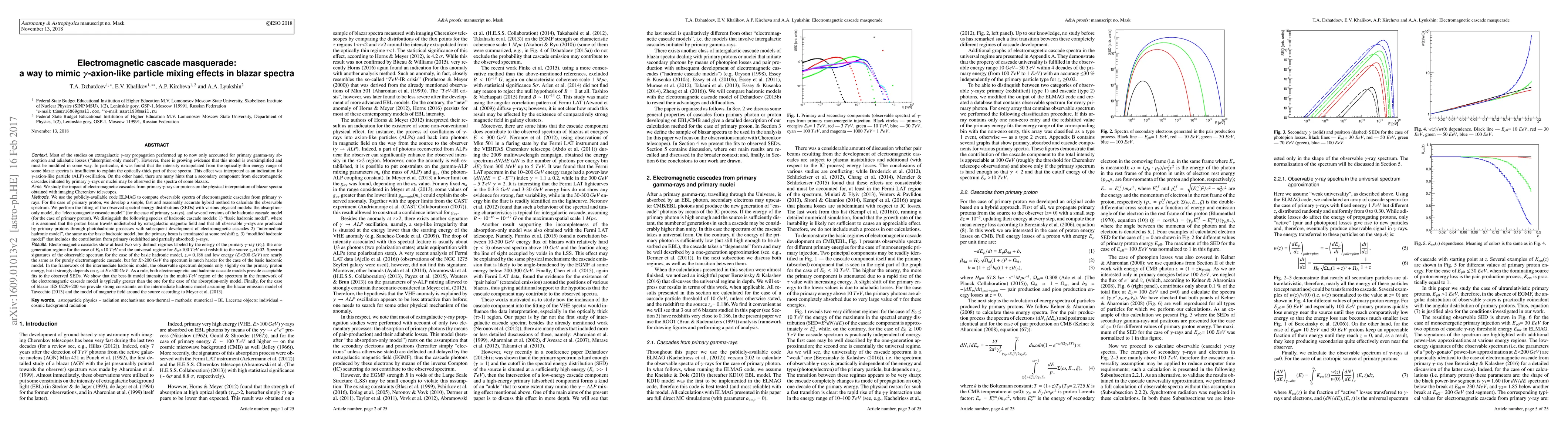This paper investigates how electromagnetic cascades from primary gamma-rays or protons can mimic the effects of gamma-axion-like particle (ALP) mixing in blazar spectra. It uses computational models to fit observed spectral energy distributions, comparing the electromagnetic cascade model with traditional absorption-only models and various hadronic cascade models.