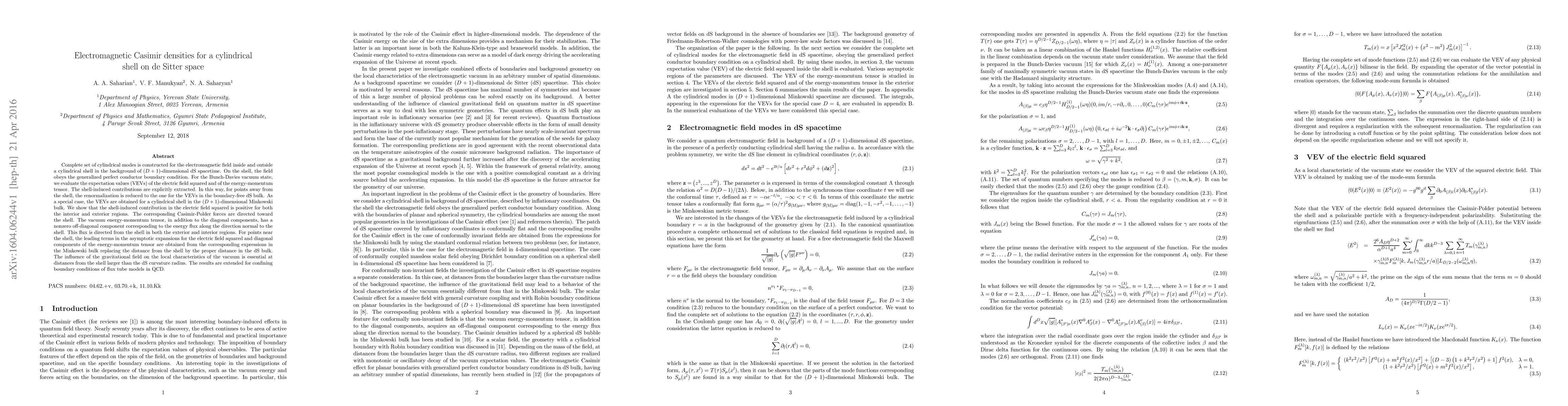 Researchers calculated the electromagnetic Casimir densities for a cylindrical shell in de Sitter space, finding that the electric field squared has positive contributions towards the shell and vacuum energy-momentum tensor has nonzero off-diagonal components.