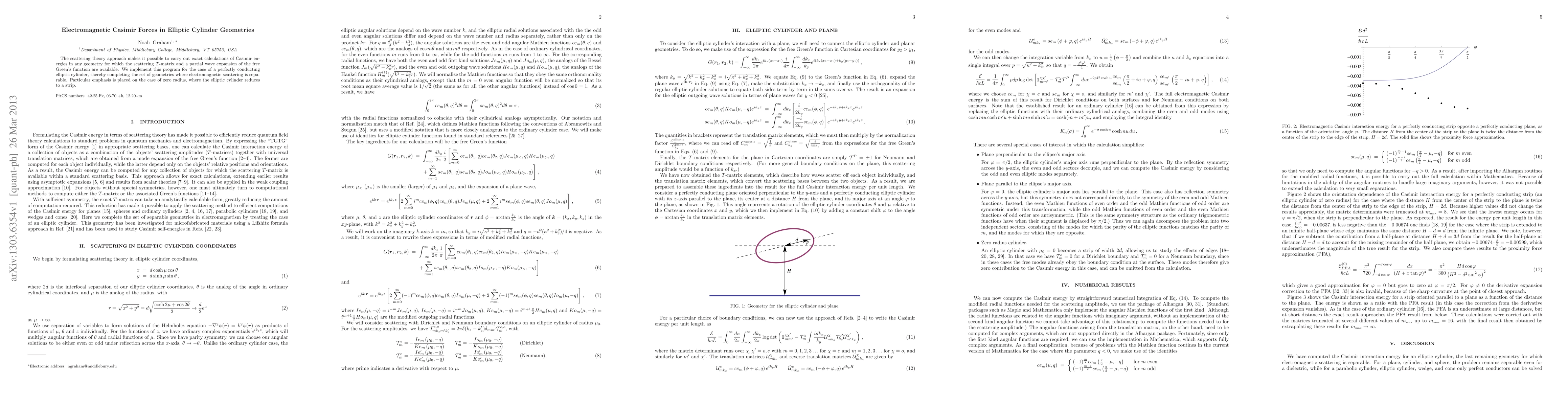 This paper calculates electromagnetic Casimir energies for a perfectly conducting elliptic cylinder using scattering theory, completing the set of separable geometries. Special attention is given to the case where the cylinder's radius is zero, reducing it to a strip.