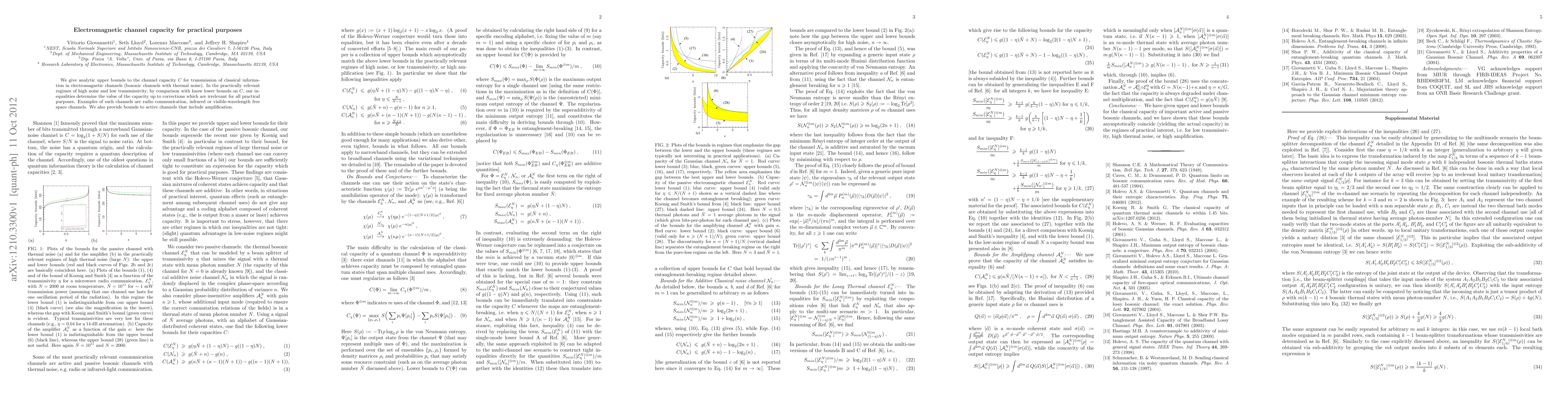 The paper provides analytic upper bounds on the channel capacity for electromagnetic channels with thermal noise, relevant to practical purposes in radio communication and free space channels.