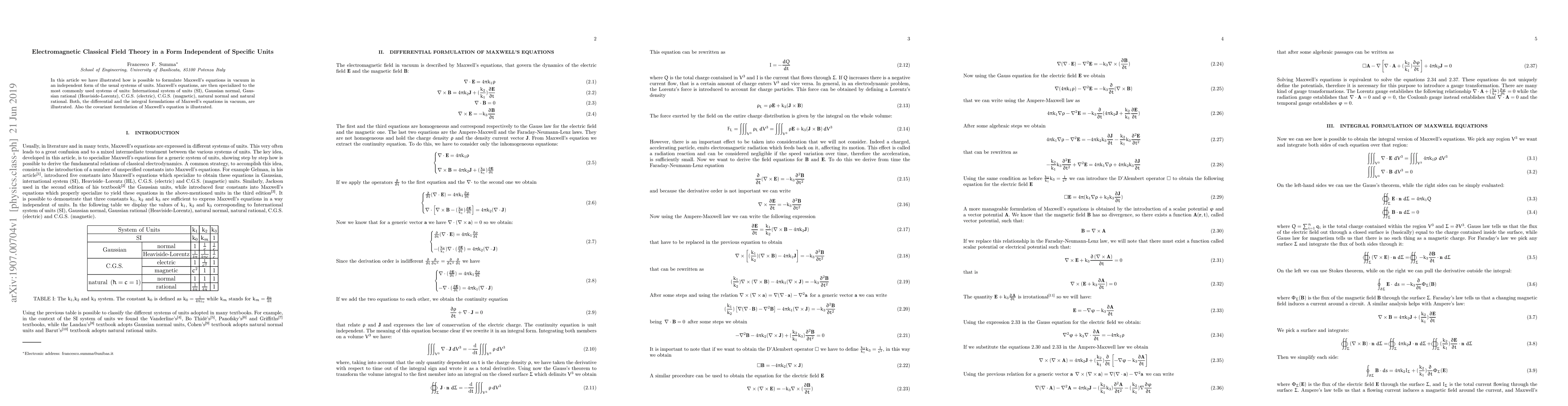 This paper demonstrates a unit-independent formulation of Maxwell's equations in vacuum and illustrates their application in various unit systems, including SI, Gaussian, and natural units, alongside differential, integral, and covariant formulations.