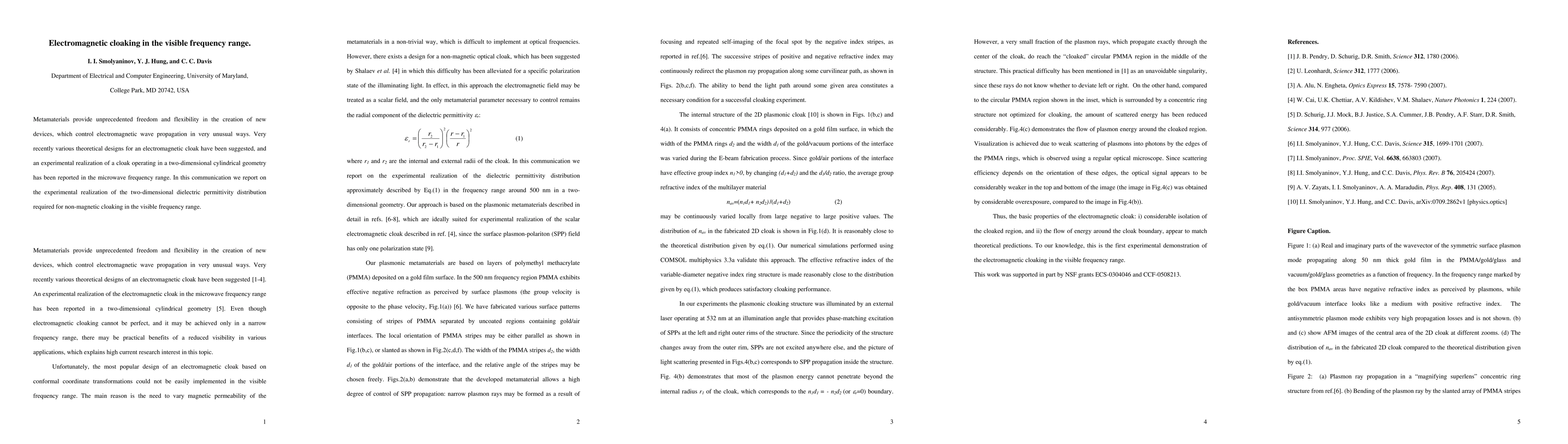 Electromagnetic metamaterials provide unprecedented freedom and flexibility to introduce new devices, which control electromagnetic wave propagation in very unusual ways. Very recently theoretical design of an "invisibility cloak" has been suggested, which has been realized at microwave frequencies in a two-dimensional cylindrical geometry. In this communication we report on the experimental realization of the dielectric permittivity distribution required for non-magnetic cloaking in the visible frequency range.