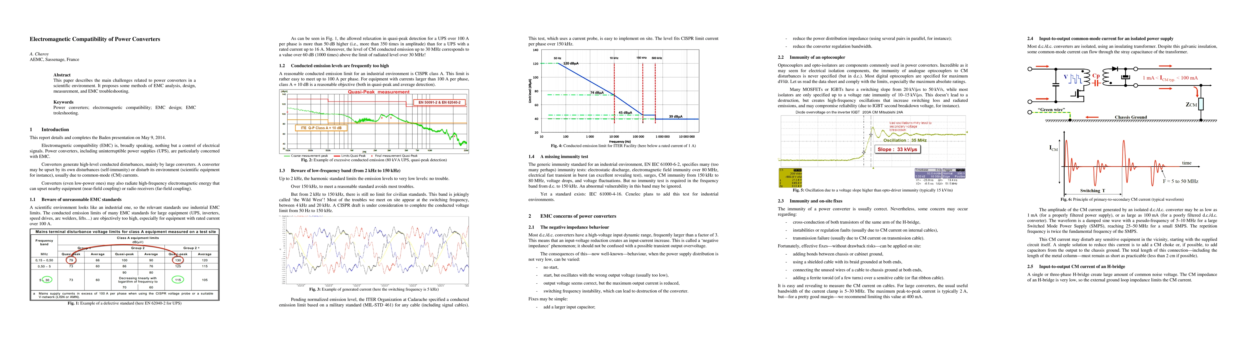 This paper describes the main challenges related to power converters in a scientific environment. It proposes some methods of EMC analysis, design, measurement, and EMC troubleshooting.
