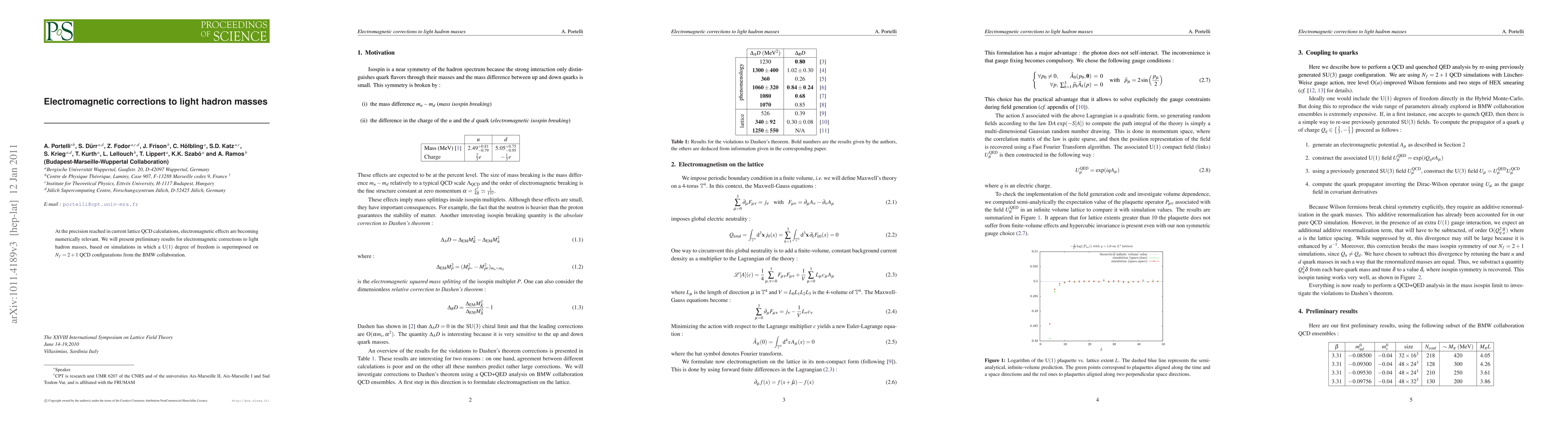This paper investigates the electromagnetic corrections to light hadron masses using lattice QCD simulations that incorporate a $\mathrm{U}(1)$ degree of freedom on $N_f=2+1$ QCD configurations. Preliminary results highlight the growing numerical significance of these effects in current calculations.