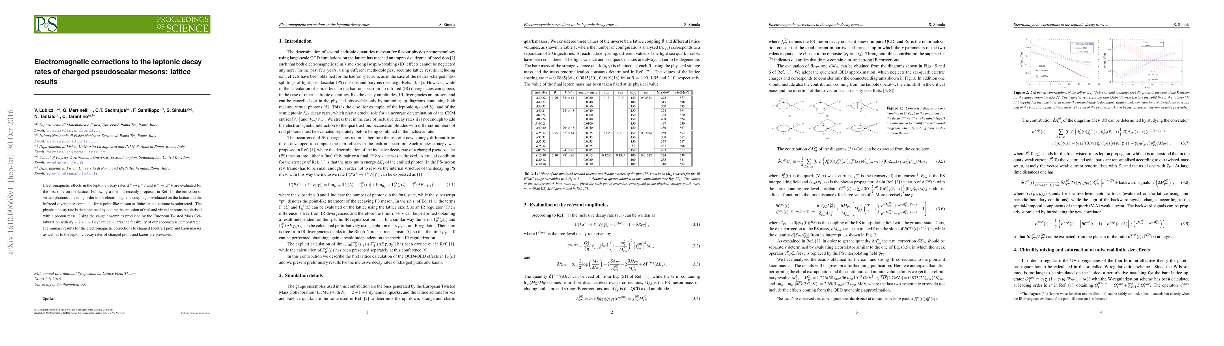 Electromagnetic effects in the leptonic decay rates $\pi^+ \to \mu^+ \nu$ and $K^+ \to \mu^+ \nu$ are evaluated for the first time on the lattice. Following a method recently proposed in Ref. [1] the emission of virtual photons at leading order in the electromagnetic coupling is evaluated on the lattice and the infrared divergence computed for a point-like meson at finite lattice volume is subtracted. The physical decay rate is then obtained by adding the emission of real and virtual photons regularised with a photon mass. Using the gauge ensembles produced by the European Twisted Mass Collaboration with $N_f = 2 + 1 + 1$ dynamical quarks the feasibility of our approach is demonstrated. Preliminary results for the electromagnetic corrections to charged (neutral) pion and kaon masses as well as to the leptonic decay rates of charged pions and kaons are presented.