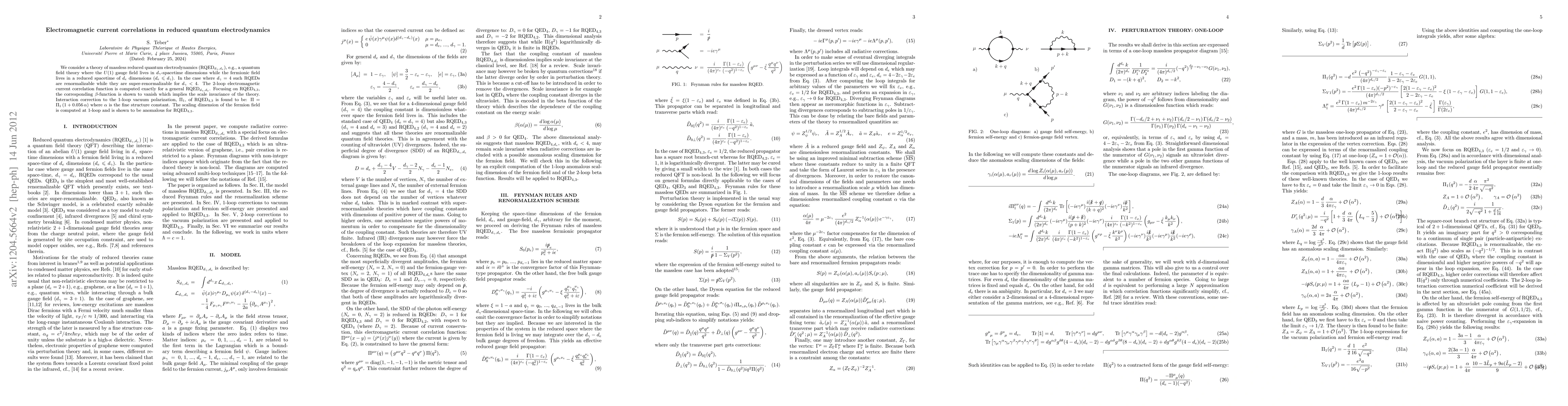 We consider a theory of massless reduced quantum electrodynamics (RQED$_{d_\gamma,d_e}$), e.g., a quantum field theory where the U(1) gauge field lives in $d_\gamma$-spacetime dimensions while the fermionic field lives in a reduced spacetime of $d_e$ dimensions ($d_e \leqslant d_\gamma$). In the case where $d_\gamma=4$ such RQEDs are renormalizable while they are super-renormalizable for $d_\gamma <4$. The 2-loop electromagnetic current correlation function is computed exactly for a general RQED$_{d_\gamma,d_e}$. Focusing on RQED$_{4,3}$, the corresponding $\beta$-function is shown to vanish which implies the scale invariance of the theory. Interaction correction to the 1-loop vacuum polarization, $\Pi_1$, of RQED$_{4,3}$ is found to be: $\Pi = \Pi_1 (1 + 0.056 \al)$ where $\al$ is the fine structure constant. The scaling dimension of the fermion field is computed at 1-loop and is shown to be anomalous for RQED$_{4,3}$.