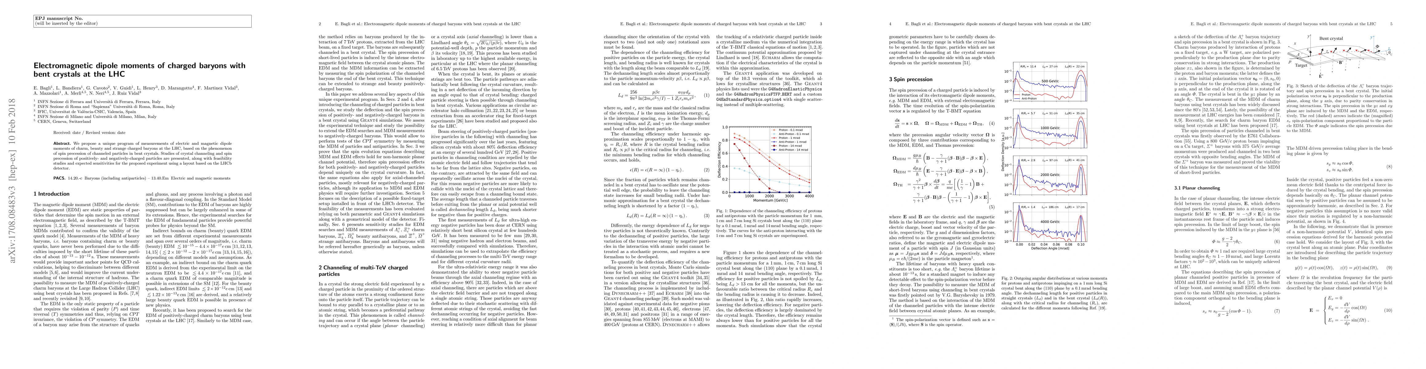 This paper proposes a novel method to measure the electric and magnetic dipole moments of charged baryons using spin precession in bent crystals at the LHC, leveraging crystal channeling and detailed feasibility studies for the LHCb detector. Expected sensitivities are discussed for charm, beauty, and strange baryons.
