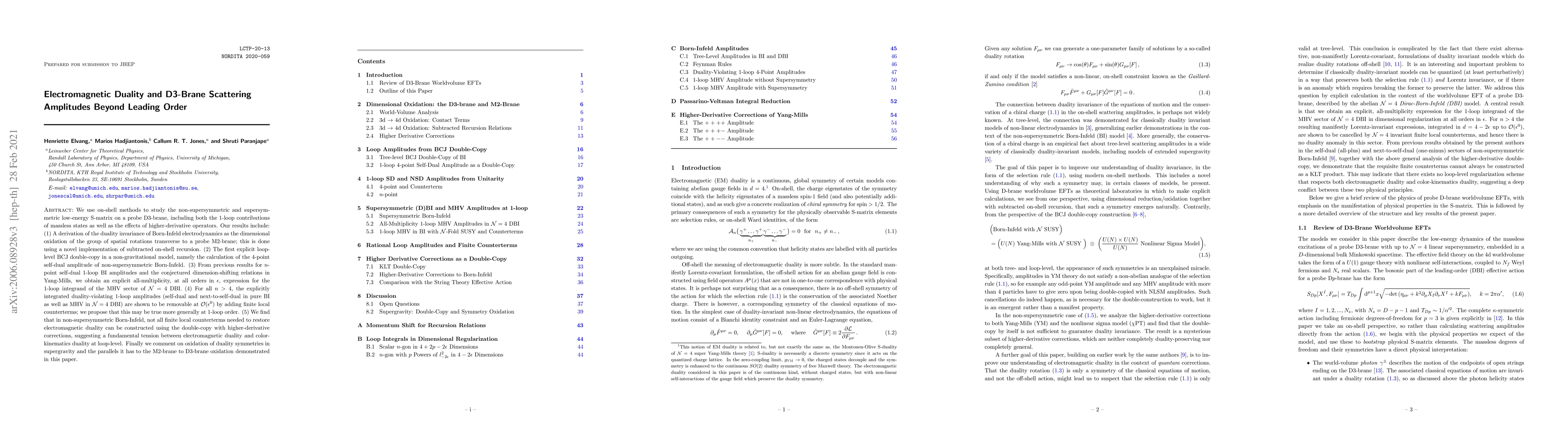 This research investigates D3-brane scattering amplitudes beyond leading order, employing on-shell methods and novel recursion techniques. Key findings include the duality invariance of Born-Infeld electrodynamics, the first explicit loop-level BCJ double-copy in a non-gravitational model, and the demonstration of removable duality-violating amplitudes at 1-loop by finite counterterms, hinting at tensions between electromagnetic and color-kinematics duality.