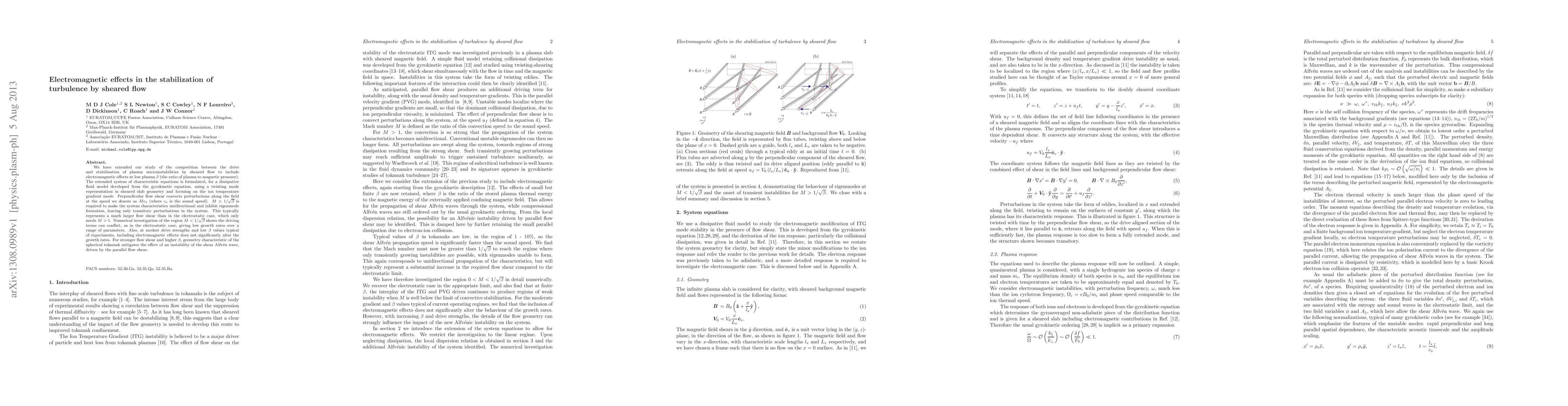 This paper investigates how electromagnetic effects influence the stabilization of turbulence in plasma microinstabilities driven by sheared flow, focusing on the ion temperature gradient mode at low plasma $\beta$. It finds that stronger flow shear and higher $\beta$ values can mitigate instabilities, while electromagnetic effects do not significantly alter growth rates at modest drive strengths and low $\beta$.