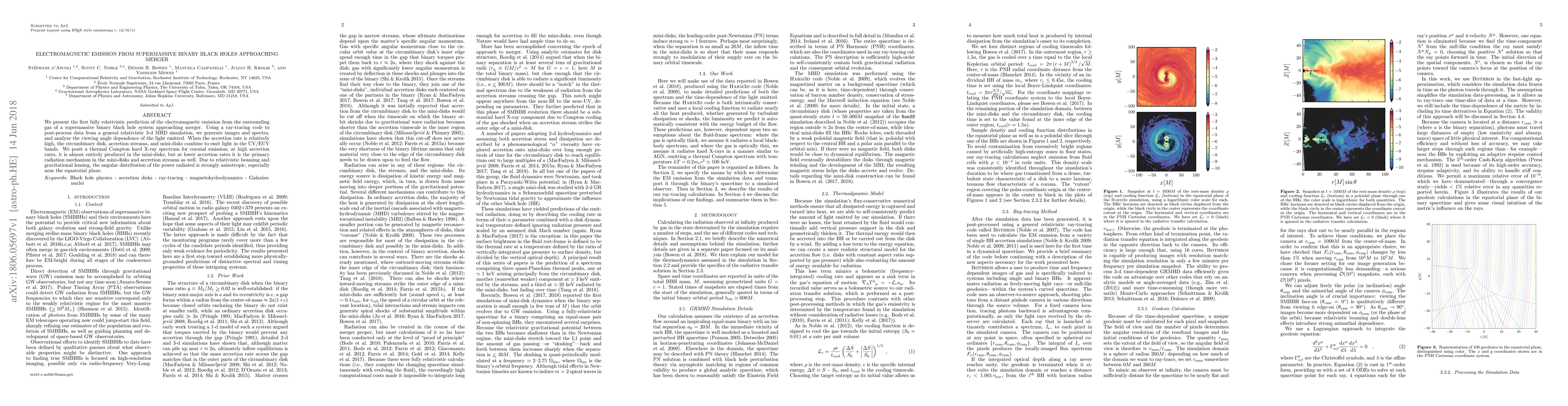 Researchers predict that supermassive binary black holes will emit intense electromagnetic radiation as they approach merger, including UV/EUV light and hard X-rays, with the power radiated varying strongly with viewing angle.
