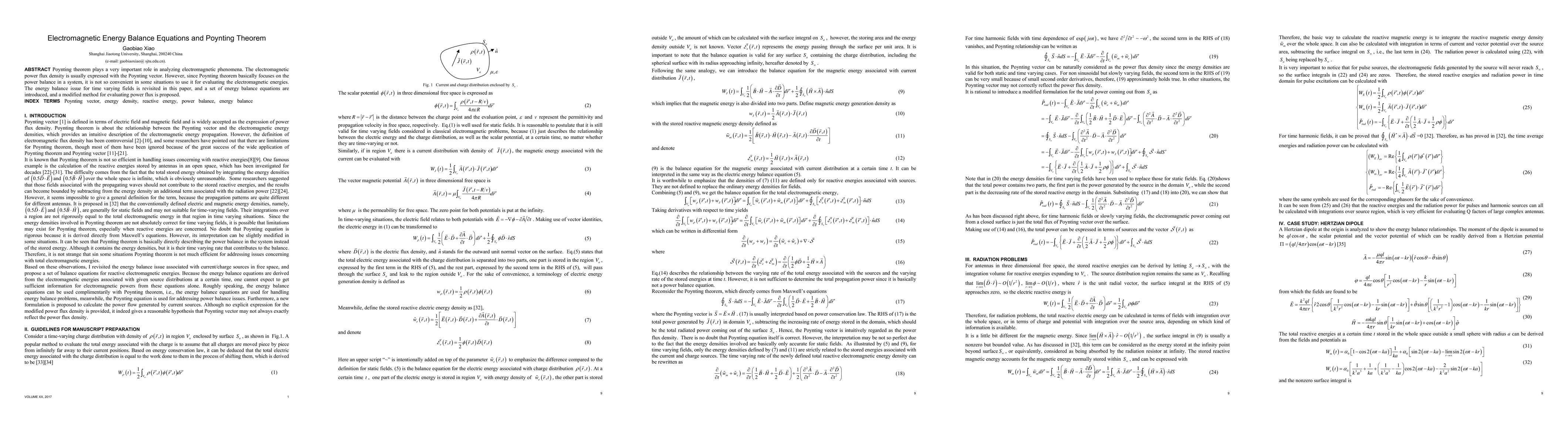 This paper revisits the energy balance issue for electromagnetic fields, introducing new energy balance equations and proposing a modified method for evaluating power flux, addressing limitations of the traditional Poynting theorem in energy evaluation.