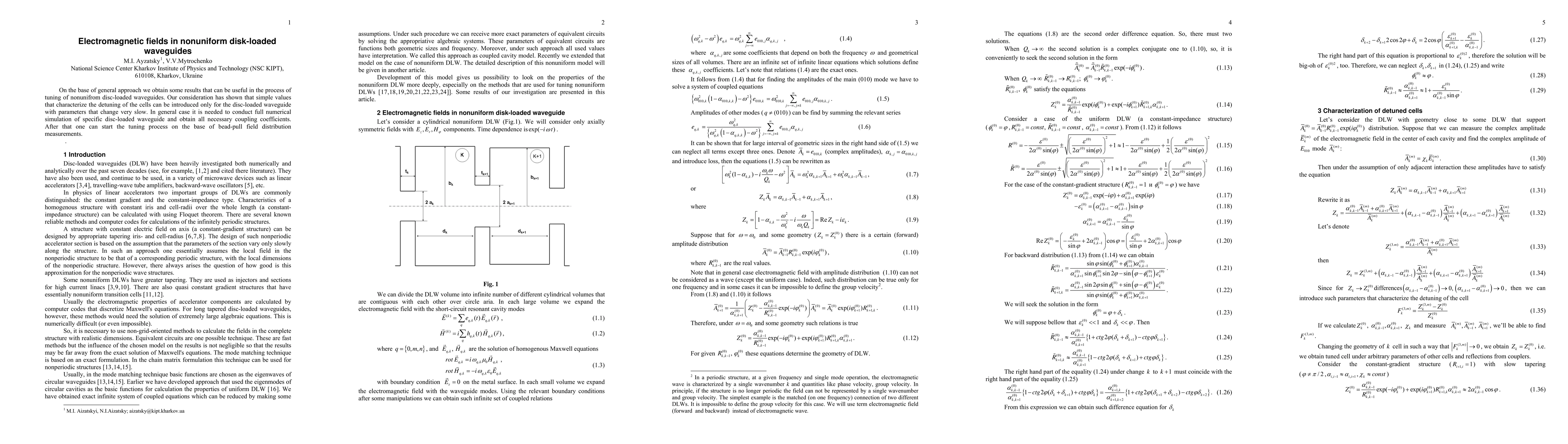On the base of general approach we obtain some results that can be useful in the process of tuning of nonunifrom disc-loaded waveguides. Our consideration has shown that simple values that characterize the detuning of the cells can be introduced only for the disc-loaded waveguide with parameters that change very slow. In general case it is needed to conduct full numerical simulation of specific disc-loaded waveguide and obtain all necessary coupling coefficients. After that one can start the tuning process on the base of bead-pull field distribution measurements.