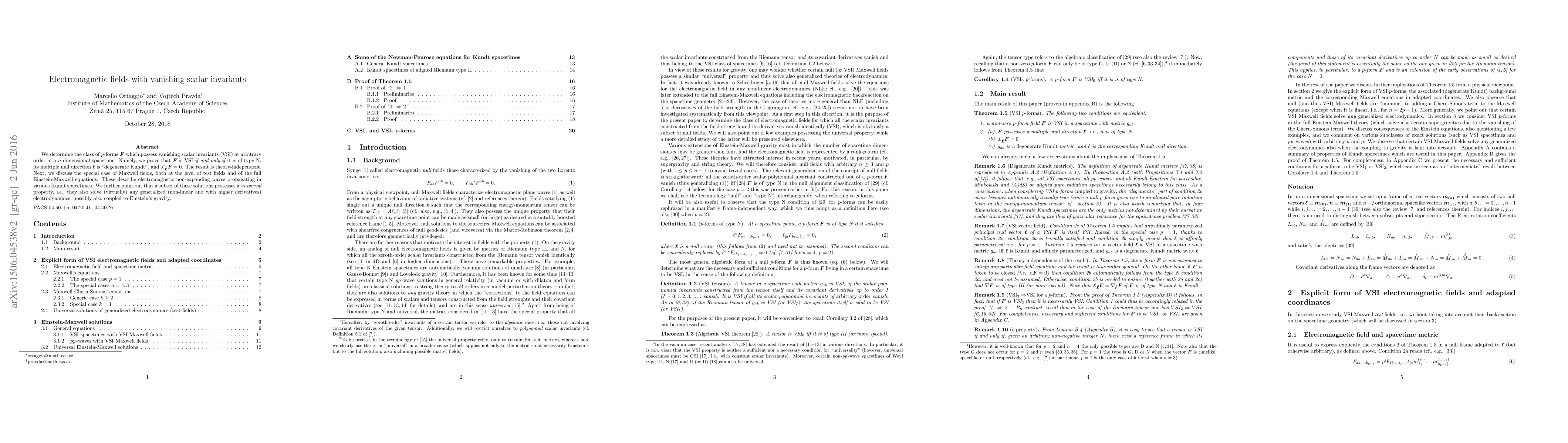 This paper identifies electromagnetic fields that have vanishing scalar invariants by proving they are of type N, with a degenerate Kundt null direction and zero covariant derivative along this direction. The findings apply universally and are illustrated in the context of Maxwell fields in both test and full Einstein-Maxwell scenarios, highlighting their propagation in Kundt spacetimes and their compatibility with generalized electrodynamics.