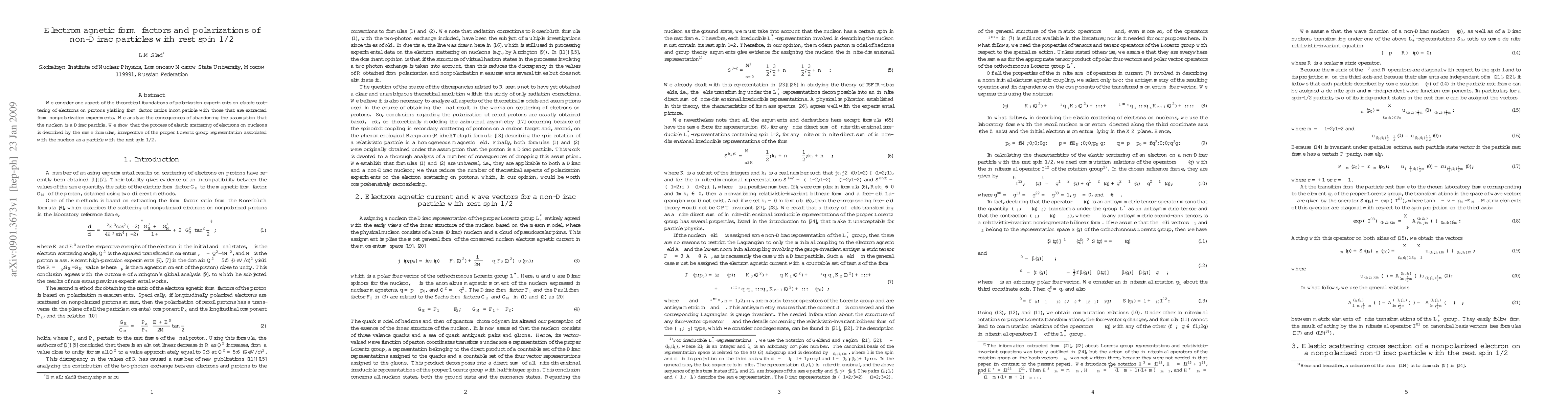 This paper investigates the implications of treating nucleons as non-Dirac particles with rest spin 1/2 on electromagnetic form factors and polarizations. It shows that elastic scattering of electrons on nucleons retains the same theoretical framework regardless of the nucleon's Lorentz group representation.