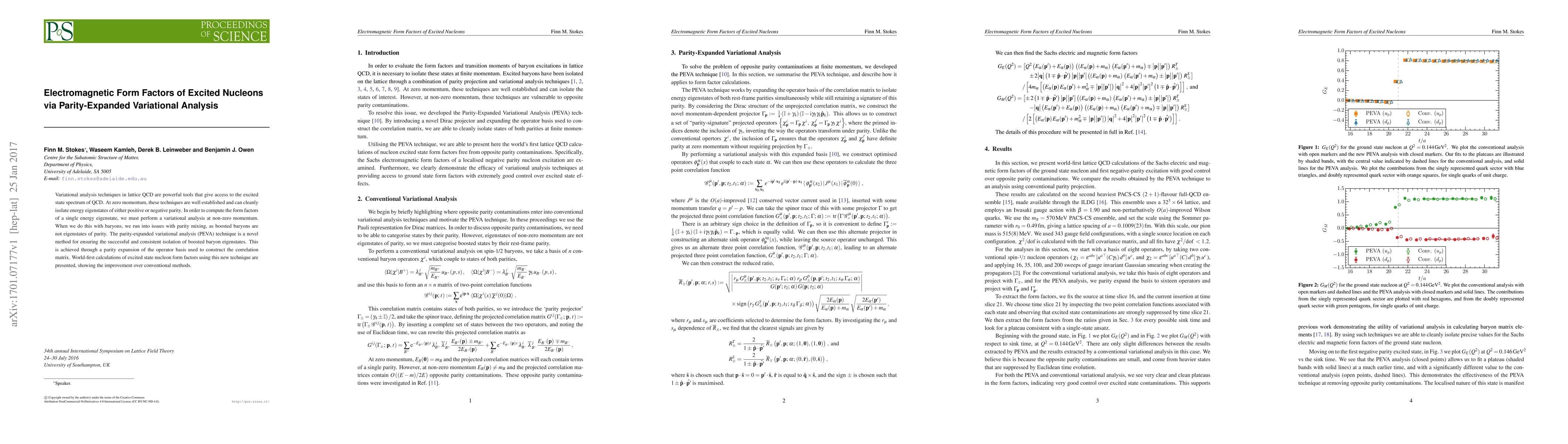 Variational analysis techniques in lattice QCD are powerful tools that give access to the excited state spectrum of QCD. At zero momentum, these techniques are well established and can cleanly isolate energy eigenstates of either positive or negative parity. In order to compute the form factors of a single energy eigenstate, we must perform a variational analysis at non-zero momentum. When we do this with baryons, we run into issues with parity mixing, as boosted baryons are not eigenstates of parity. The parity-expanded variational analysis (PEVA) technique is a novel method for ensuring the successful and consistent isolation of boosted baryon eigenstates. This is achieved through a parity expansion of the operator basis used to construct the correlation matrix. World-first calculations of excited state nucleon form factors using this new technique are presented, showing the improvement over conventional methods.