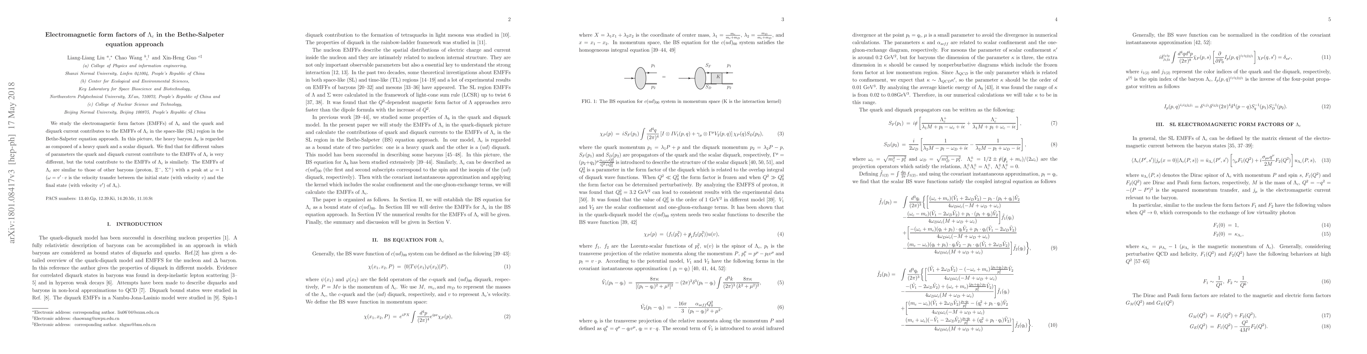 We study the electromagnetic form factors (EMFFs) of $\Lambda_c$ and the quark and diquark current contributes to the EMFFs of $\Lambda_c$ in the space-like (SL) region in the Bethe-Salpeter equation approach. In this picture, the heavy baryon $\Lambda_c $ is regarded as composed of a heavy quark and a scalar diquark. We find that for different values of parameters the quark and diquark current contribute to the EMFFs of $\Lambda_c$ is very different, but the total contribute to the EMFFs of $\Lambda_c$ is similarly. The EMFFs of $\Lambda_c$ are similar to those of other baryons (proton, $\Xi^-$, $\Sigma^+$) with a peak at $\omega =1$ ($\omega=v^\prime \cdot v $ is the velocity transfer between the initial state (with velocity $v$) and the final state (with velocity $v^\prime$) of $\Lambda_c$).