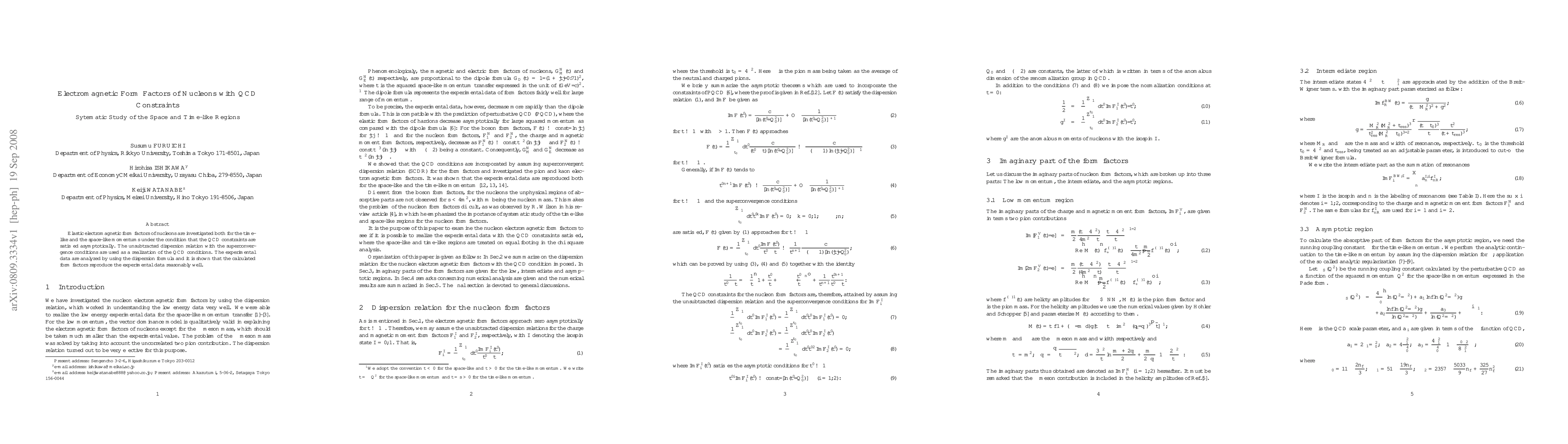 Elastic electromagnetic form factors of nucleons are investigated both for the time-like and the space-like momentums under the condition that the QCD constraints are satisfied asymptotically. The unsubtracted dispersion relation with the superconvergence conditions are used as a realization of the QCD conditions. The experimental data are analyzed by using the dispersion formula and it is shown that the calculated form factors reproduce the experimental data reasonably well.