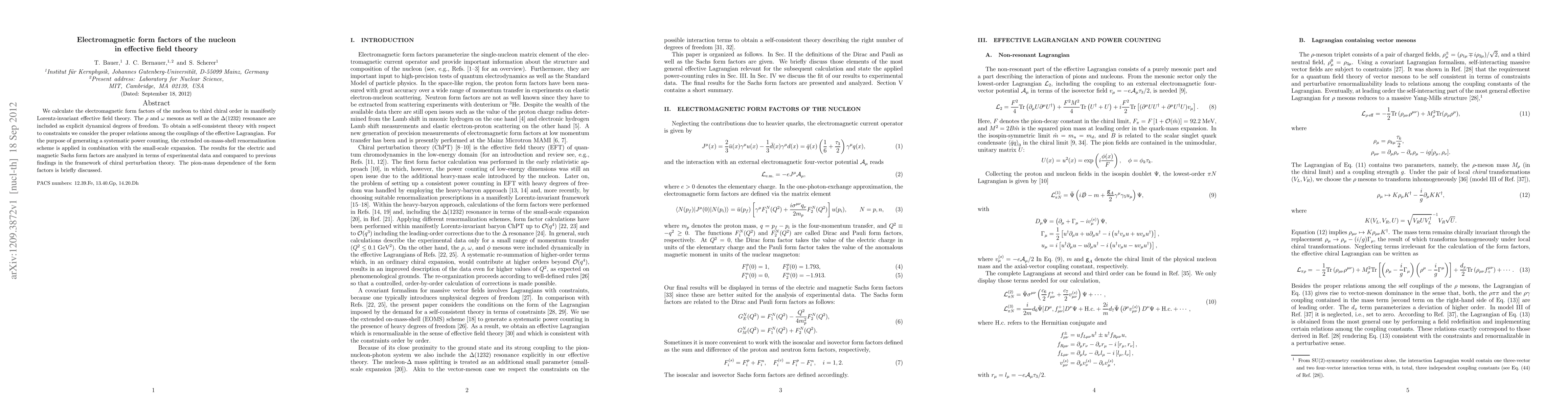 We calculate the electromagnetic form factors of the nucleon to third chiral order in manifestly Lorentz-invariant effective field theory. The rho and omega mesons as well as the Delta(1232) resonance are included as explicit dynamical degrees of freedom. To obtain a self-consistent theory with respect to constraints we consider the proper relations among the couplings of the effective Lagrangian. For the purpose of generating a systematic power counting, the extended on-mass-shell renormalization scheme is applied in combination with the small-scale expansion. The results for the electric and magnetic Sachs form factors are analyzed in terms of experimental data and compared to previous findings in the framework of chiral perturbation theory. The pion-mass dependence of the form factors is briefly discussed.