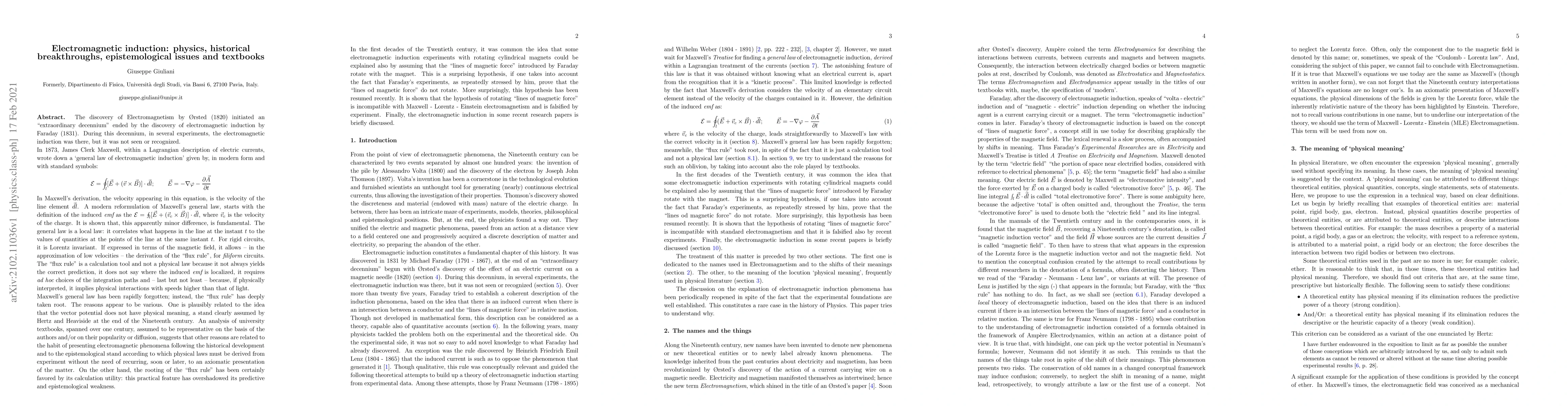 This paper explores the historical development of electromagnetic induction from Oersted's discovery to Faraday's recognition and Maxwell's formulation, highlighting the epistemological issues and the preference for the "flux rule" over Maxwell's "general law" in textbooks. It critiques the enduring misconceptions and recent revivals of outdated ideas, emphasizing the importance of accurate physical laws over calculation tools.