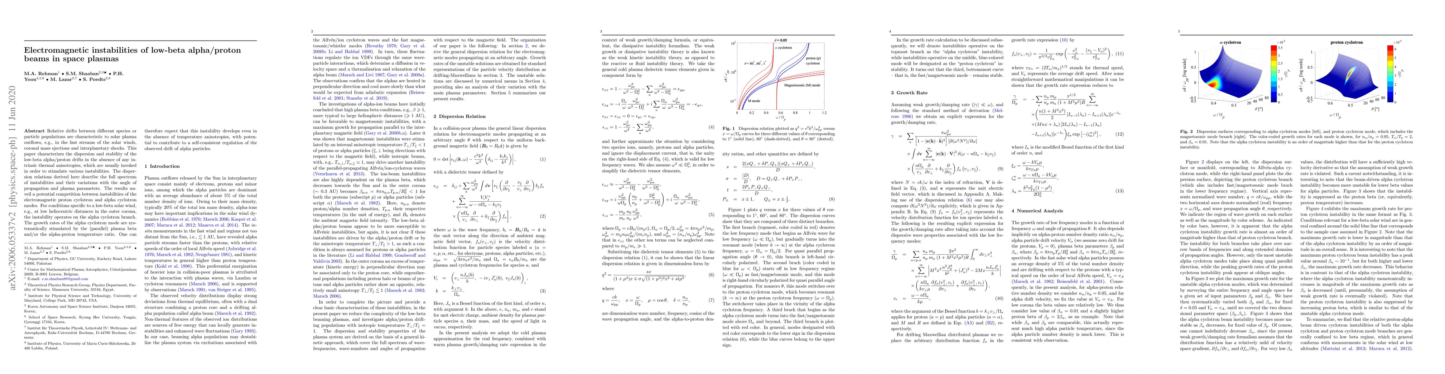 Relative drifts between different species or particle populations are characteristic to solar plasma outflows, e.g., in the fast streams of the solar winds, coronal mass ejections and interplanetary shocks. This paper characterizes the dispersion and stability of the low-beta alpha/proton drifts in the absence of any intrinsic thermal anisotropies, which are usually invoked in order to stimulate various instabilities. The dispersion relations derived here describe the full spectrum of instabilities and their variations with the angle of propagation and plasma parameters. The results unveil a potential competition between instabilities of the electromagnetic proton cyclotron and alpha cyclotron modes. For conditions specific to a low-beta solar wind, e.g., at low heliocentric distances in the outer corona, the instability operates on the alpha cyclotron branch. The growth rates of the alpha cyclotron mode are systematically stimulated by the (parallel) plasma beta and/or the alpha-proton temperature ratio. One can therefore expect that this instability develops even in the absence of temperature anisotropies, with potential to contribute to a self-consistent regulation of the observed drift of alpha particles.