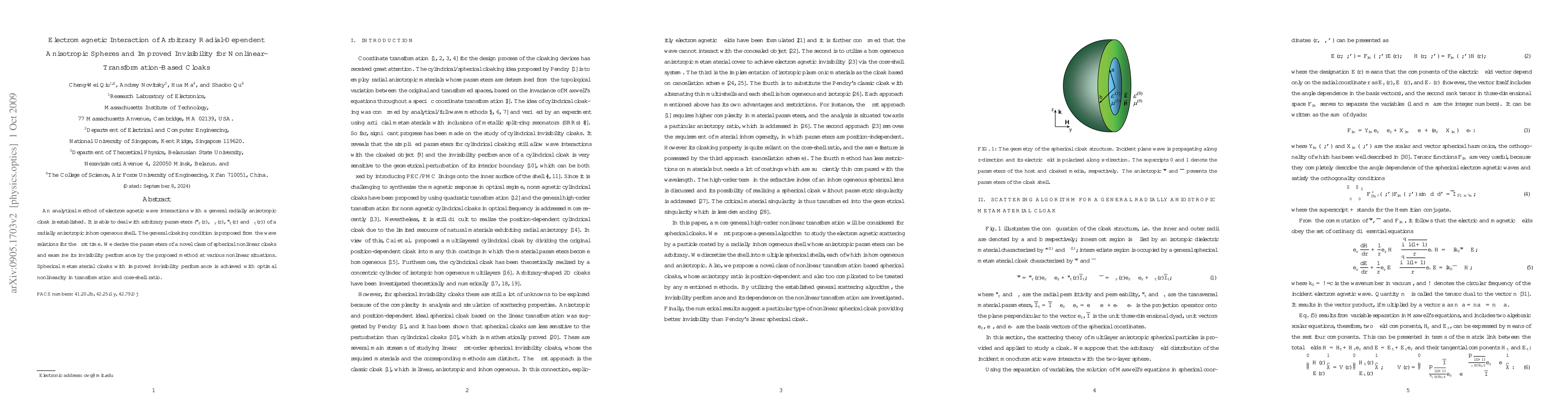 This paper presents an analytical method for electromagnetic wave interactions with radially anisotropic cloaks, proposing a general cloaking condition. It introduces a novel class of spherical nonlinear cloaks with improved invisibility, optimized for various nonlinear scenarios.