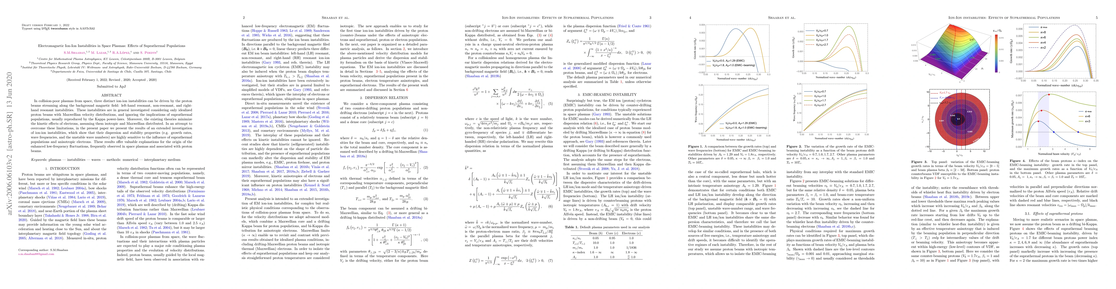 This paper investigates electromagnetic ion-ion instabilities in space plasmas, revealing that the presence of suprathermal populations and anisotropic electrons significantly alters their dispersion and stability properties. These findings provide insights into the enhanced low-frequency fluctuations often observed in space plasmas.