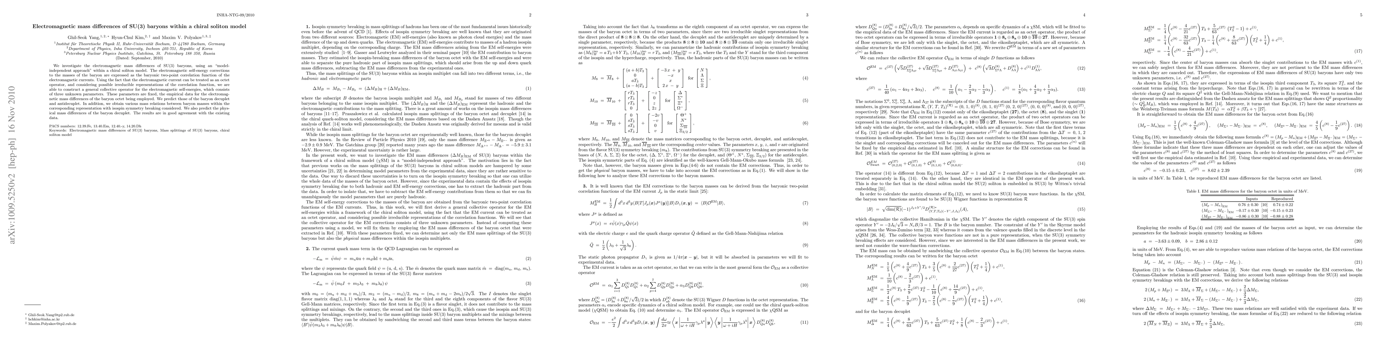 This paper investigates electromagnetic mass differences in SU(3) baryons using a chiral soliton model and a model-independent approach. The study predicts mass differences for the baryon decuplet and antidecuplet, and finds good agreement with empirical data.