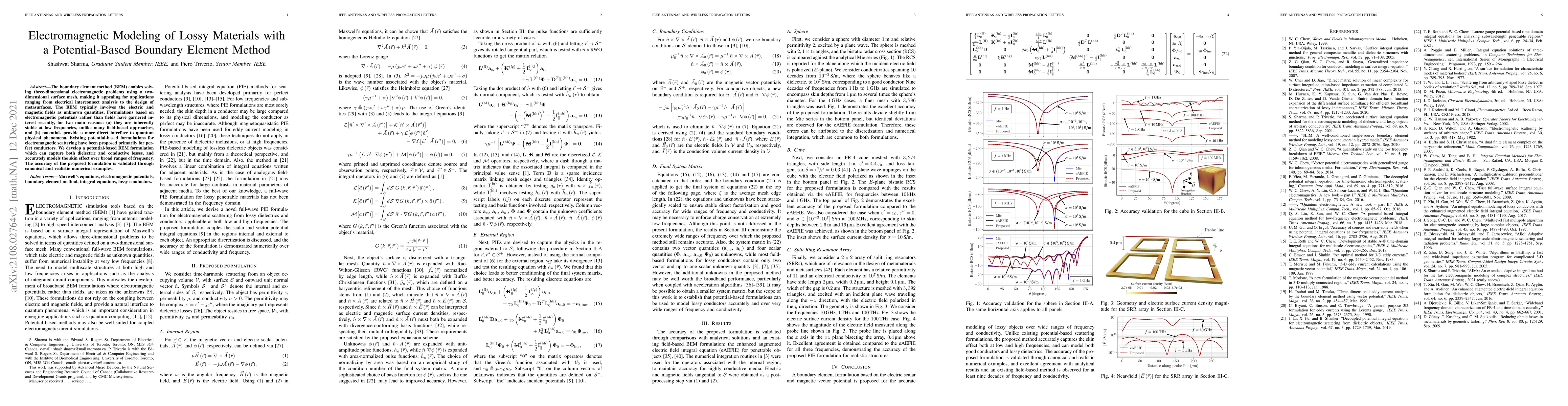 This paper develops a potential-based boundary element method (BEM) for modeling lossy materials, addressing both dielectric and conductive losses. The proposed method accurately captures the skin effect and is validated through numerical examples, offering stability at low frequencies and a direct interface to quantum phenomena.