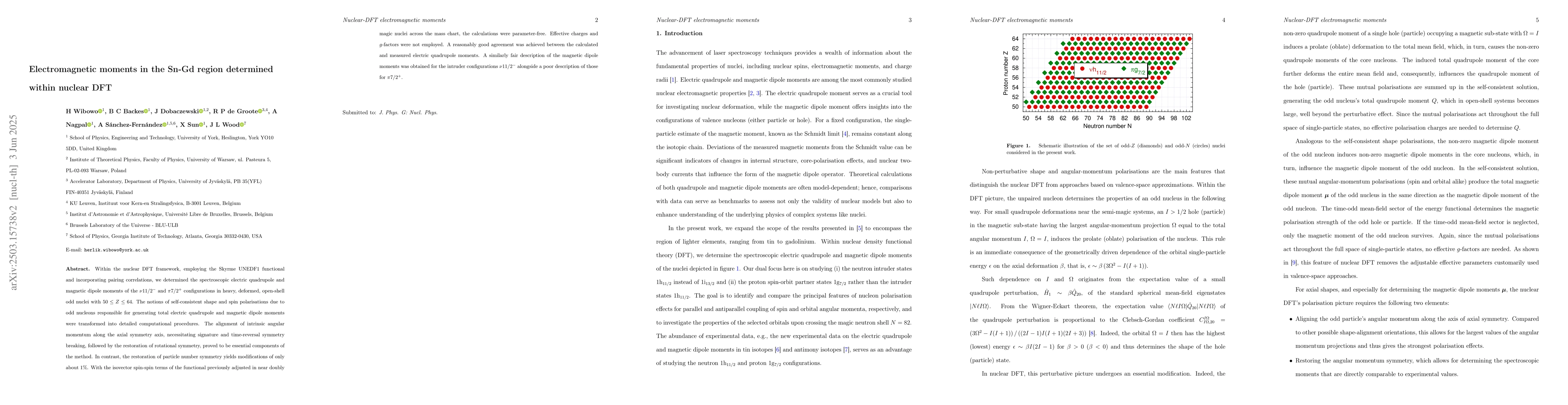 This work distinguishes itself by applying nuclear DFT to determine electromagnetic moments in the Sn-Gd region without requiring parameter adjustments for specific regions of the nuclear chart, enabling large-scale nuclear DFT calculations.