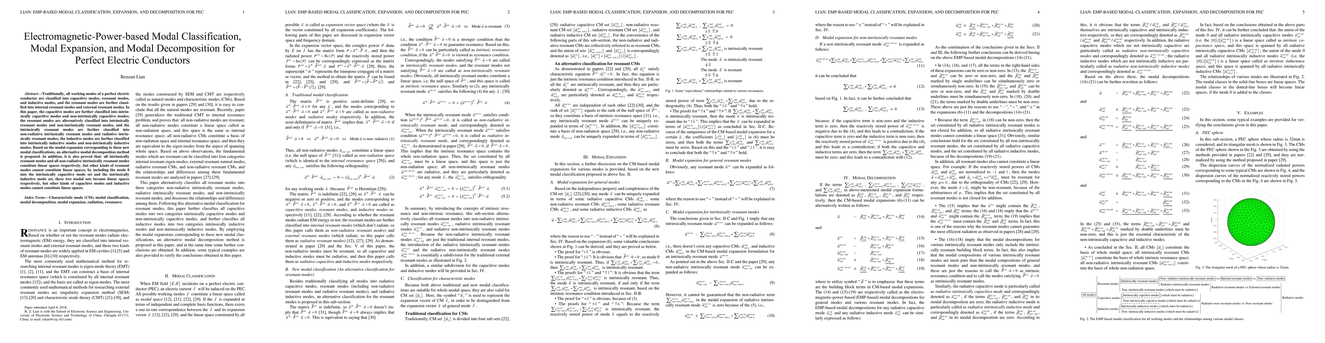 Traditionally, all working modes of a perfect electric conductor are classified into capacitive modes, resonant modes, and inductive modes, and the resonant modes are further classified into internal resonant modes and external resonant modes. In this paper, the capacitive modes are further classified into intrinsically capacitive modes and non-intrinsically capacitive modes; the resonant modes are alternatively classified into intrinsically resonant modes and non-intrinsically resonant modes, and the intrinsically resonant modes are further classified into non-radiative intrinsically resonant modes and radiative intrinsically resonant modes; the inductive modes are further classified into intrinsically inductive modes and non-intrinsically inductive modes. Based on the modal expansion corresponding to these new modal classifications, an alternative modal decomposition method is proposed. In addition, it is also proved that: all intrinsically resonant modes and all non-radiative intrinsically resonant modes constitute linear spaces respectively, but other kinds of resonant modes cannot constitute linear spaces; by including the mode 0 into the intrinsically capacitive mode set and the intrinsically inductive mode set, these two modal sets become linear spaces respectively, but other kinds of capacitive modes and inductive modes cannot constitute linear spaces.