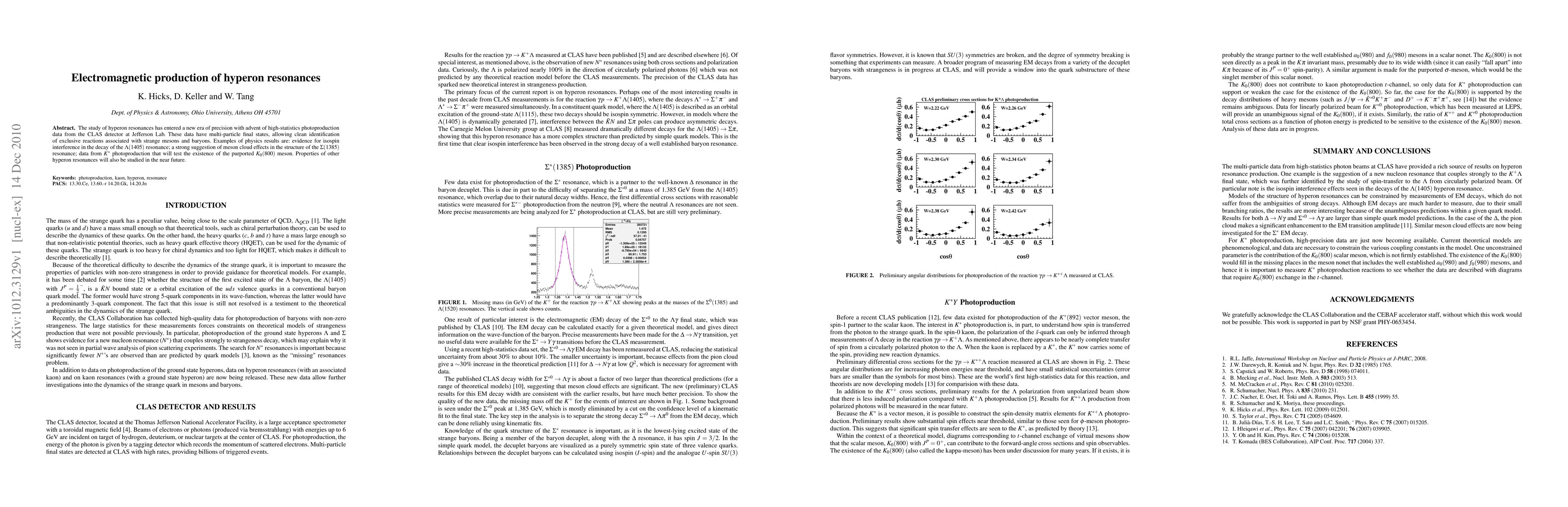 This paper reports on the precise study of hyperon resonances using high-statistics photoproduction data from the CLAS detector, revealing isospin interference in the $\Lambda(1405)$ decay and suggesting meson cloud effects in the $\Sigma(1385)$ resonance. Future studies will further explore other hyperon resonances.
