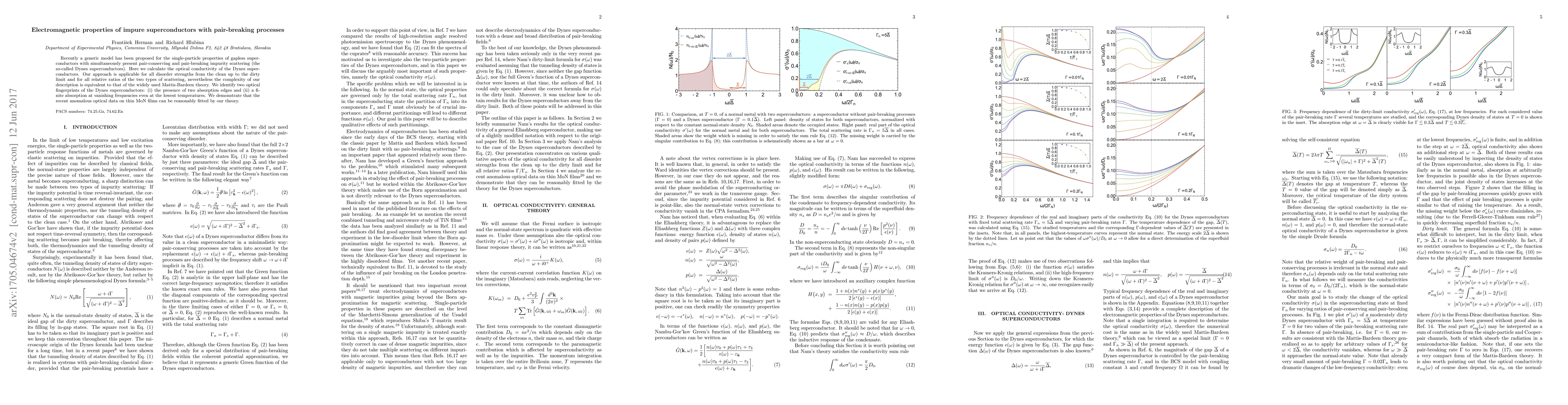 Recently a generic model has been proposed for the single-particle properties of gapless superconductors with simultaneously present pair-conserving and pair-breaking impurity scattering (the so-called Dynes superconductors). Here we calculate the optical conductivity of the Dynes superconductors. Our approach is applicable for all disorder strengths from the clean up to the dirty limit and for all relative ratios of the two types of scattering, nevertheless the complexity of our description is equivalent to that of the widely used Mattis-Bardeen theory. We identify two optical fingerprints of the Dynes superconductors: (i) the presence of two absorption edges and (ii) a finite absorption at vanishing frequencies even at the lowest temperatures. We demonstrate that the recent anomalous optical data on thin MoN films can be reasonably fitted by our theory.
