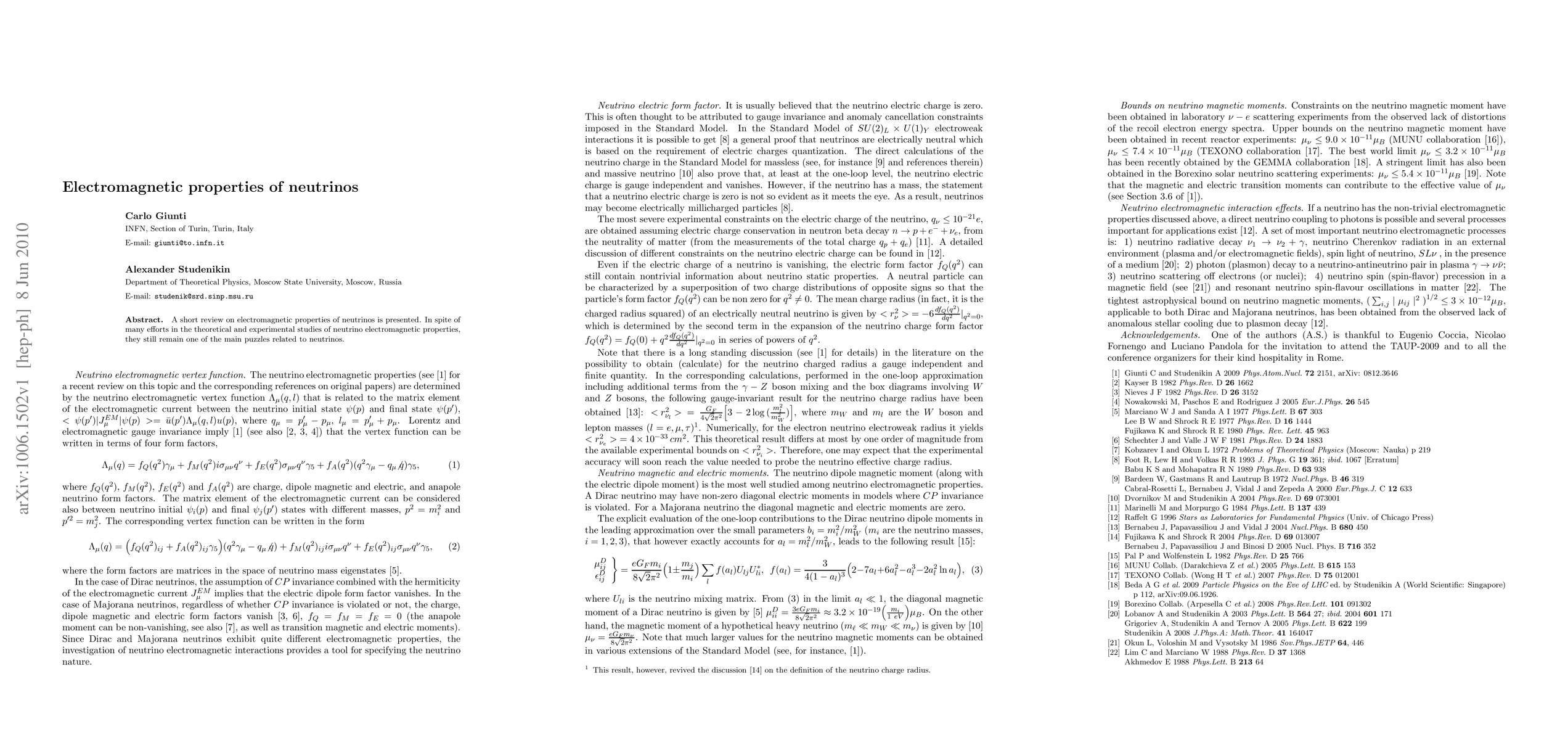Neutrinos' electromagnetic properties remain a puzzle despite ongoing research efforts. A brief review highlights the challenges in understanding these elusive particles.