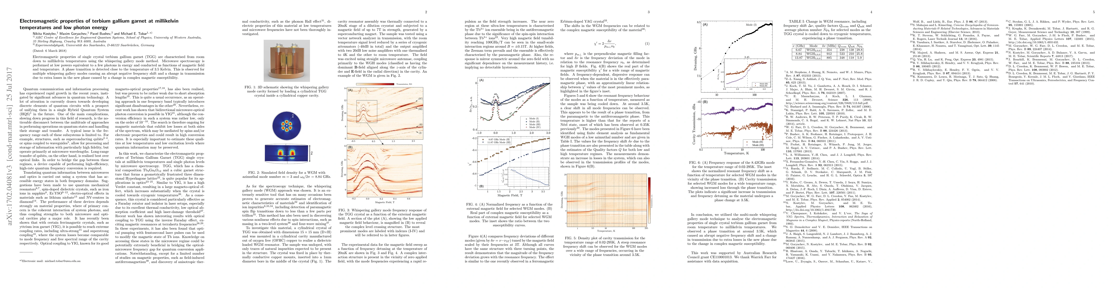 Researchers studied terbium gallium garnet at extremely low temperatures, detecting a phase transition near 3.5 K that causes a negative frequency shift and increased losses in the material.