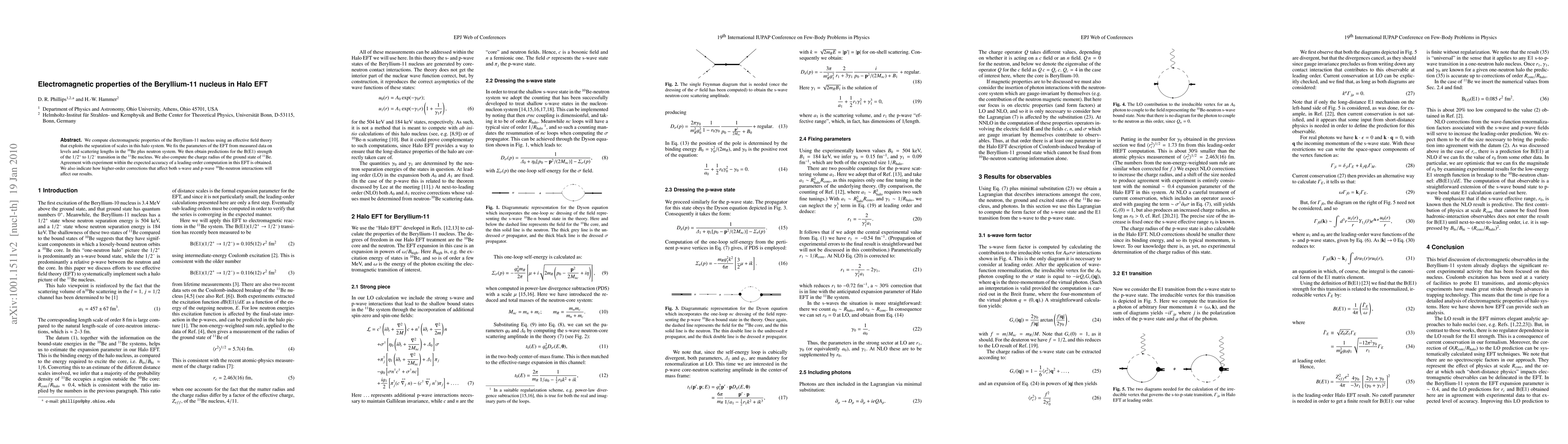 This paper uses an effective field theory to calculate electromagnetic properties of the Be-11 nucleus, focusing on the B(E1) strength and charge radius. The parameters are calibrated using Be-10 plus neutron data, achieving agreement with experimental results within the expected accuracy of leading-order computations.