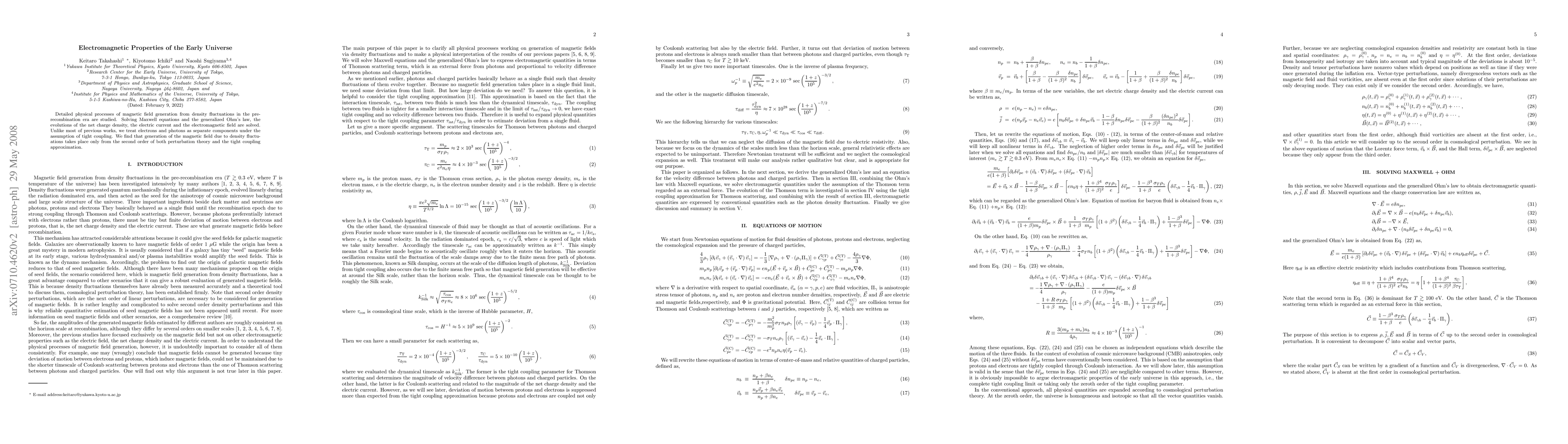 Detailed physical processes of magnetic field generation from density fluctuations in the pre-recombination era are studied. Solving Maxwell equations and the generalized Ohm's law, the evolutions of the net charge density, the electric current and the electromagnetic field are solved. Unlike most of previous works, we treat electrons and photons as separate components under the assumption of tight coupling. We find that generation of the magnetic field due to density fluctuations takes place only from the second order of both perturbation theory and the tight coupling approximation.