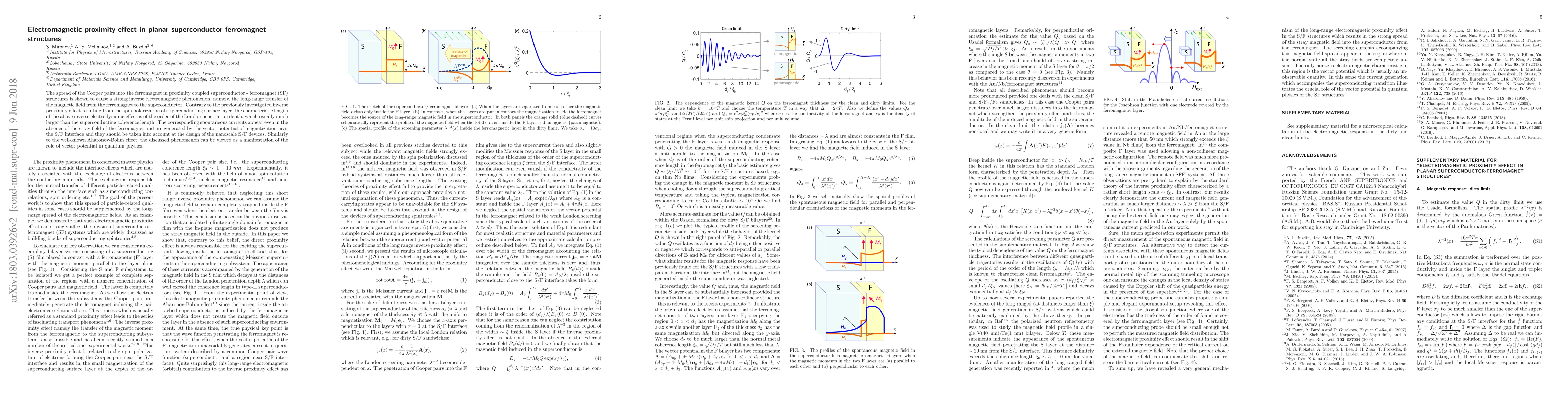 This paper investigates the electromagnetic proximity effect in superconductor-ferromagnet structures, revealing a long-range transfer of magnetic fields from the ferromagnet to the superconductor due to Cooper pair penetration. This inverse effect, characterized by the London penetration depth, generates spontaneous currents near the interface, highlighting its importance in the design of nanoscale devices.