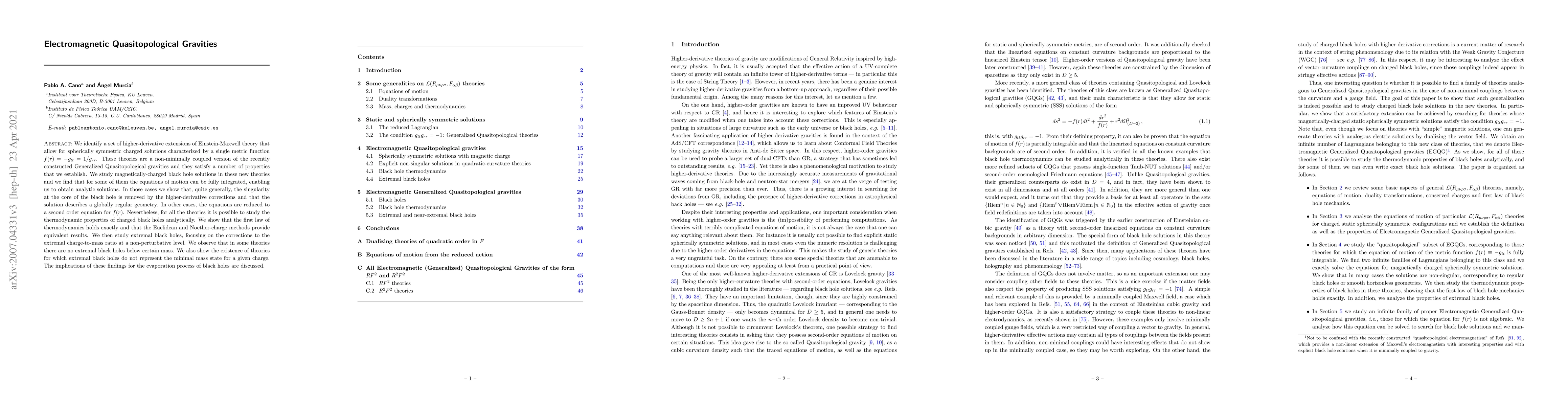The research introduces a new class of non-minimally coupled higher-derivative extensions of Einstein-Maxwell theory, characterized by magnetic spherically symmetric solutions with a single metric function f(r) and integrable equations of motion for some theories. The study focuses on Electromagnetic Quasitopological Gravities (EQTGs) and their thermodynamic properties.