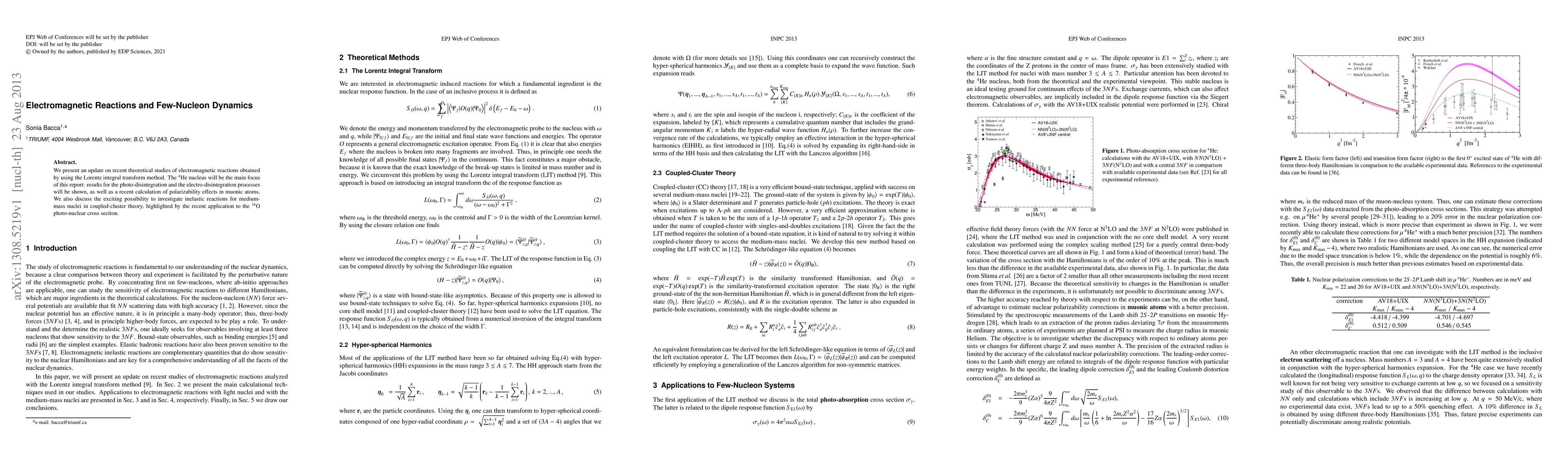 We present an update on recent theoretical studies of electromagnetic reactions obtained by using the Lorentz integral transform method. The 4He nucleus will be the main focus of this report: results for the photo-disintegration and the electro-disintegration processes will be shown, as well as a recent calculation of polarizability effects in muonic atoms. We also discuss the exciting possibility to investigate inelastic reactions for medium-mass nuclei in coupled-cluster theory, highlighted by the recent application to the 16O photo-nuclear cross section.