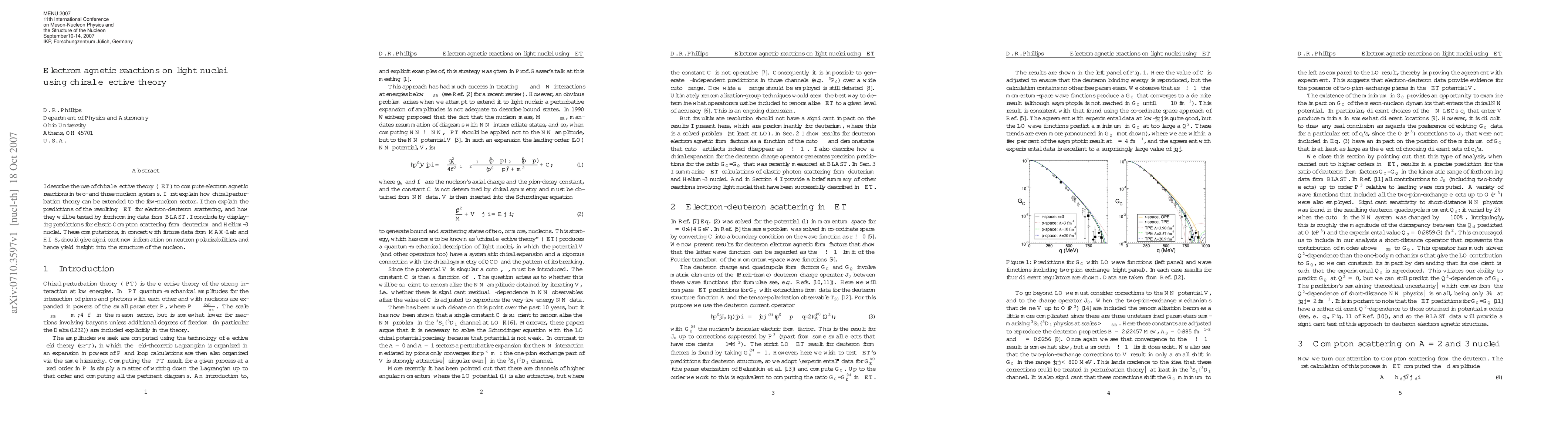 I describe the use of chiral effective theory (ChiET) to compute electromagnetic reactions in two- and three-nucleon systems. I first explain how chiral perturbation theory can be extended to the few-nucleon sector. I then explain the predictions of the resulting ChiET for electron-deuteron scattering, and how they will be tested by forthcoming data from BLAST. I conclude by displaying predictions for elastic Compton scattering from deuterium and Helium-3 nuclei. These computations, in concert with future data from MAX-Lab and HIGS, should give significant new information on neutron polarizabilities, and hence yield insight into the structure of the nucleon.