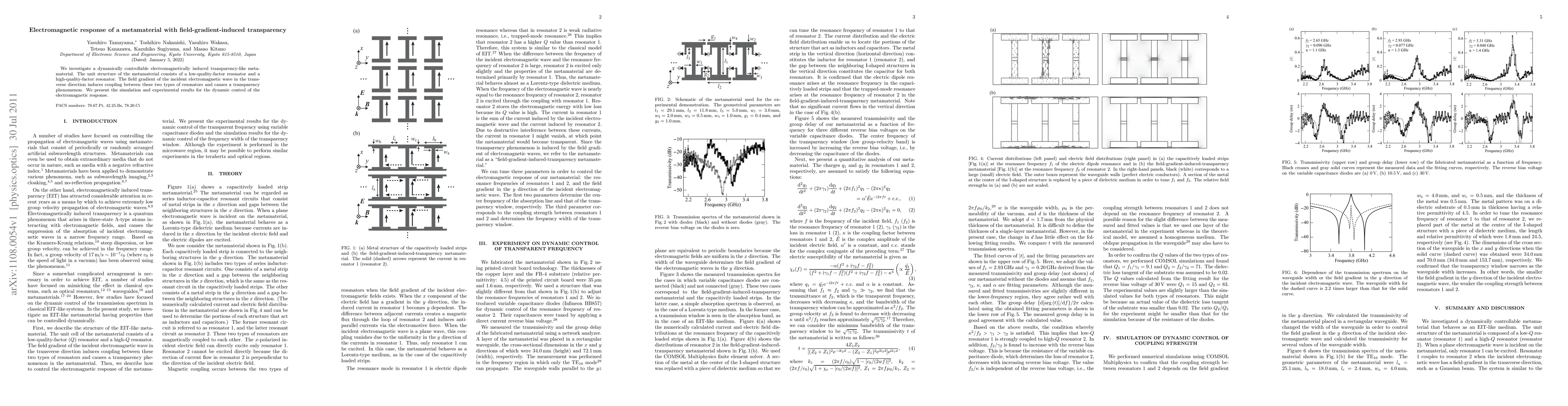 This paper explores a metamaterial that exhibits electromagnetically induced transparency through field-gradient coupling between low- and high-quality-factor resonators, demonstrating both simulation and experimental control over its electromagnetic response.
