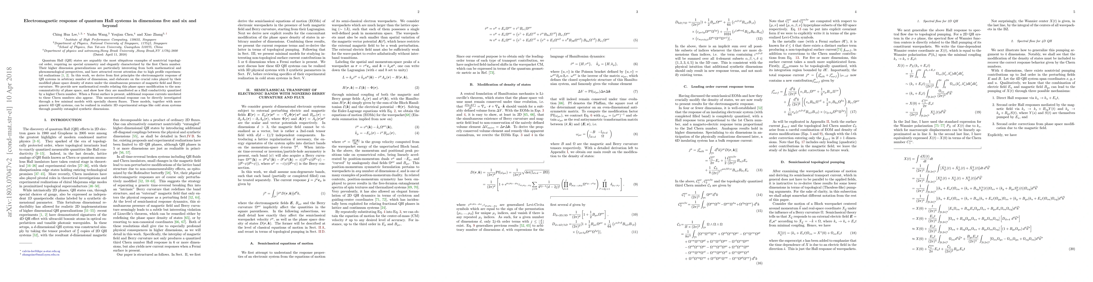 Quantum Hall (QH) states are arguably the most ubiquitous examples of nontrivial topological order, requiring no special symmetry and elegantly characterized by the first Chern number. Their higher dimension generalizations are particularly interesting from both mathematical and phenomenological perspectives, and have attracted recent attention due to a few high profile experimental realizations. In this work, we derive from first principles the electromagnetic response of QH systems in arbitrary number of dimensions, and elaborate on the crucial roles played by their modified phase space density of states under the simultaneous presence of magnetic field and Berry curvature. We provide new mathematical results relating this phase space modification to the non-commutativity of phase space, and show how they are manifested as a Hall conductivity quantized by a higher Chern number. When a Fermi surface is present, additional response currents unrelated to these Chern numbers also appear. This unconventional response can be directly investigated through a few minimal models with specially chosen fluxes. These models, together with more generic 6D QH systems, can be realized in realistic 3D experimental setups like cold atom systems through possibly entangled synthetic dimensions.