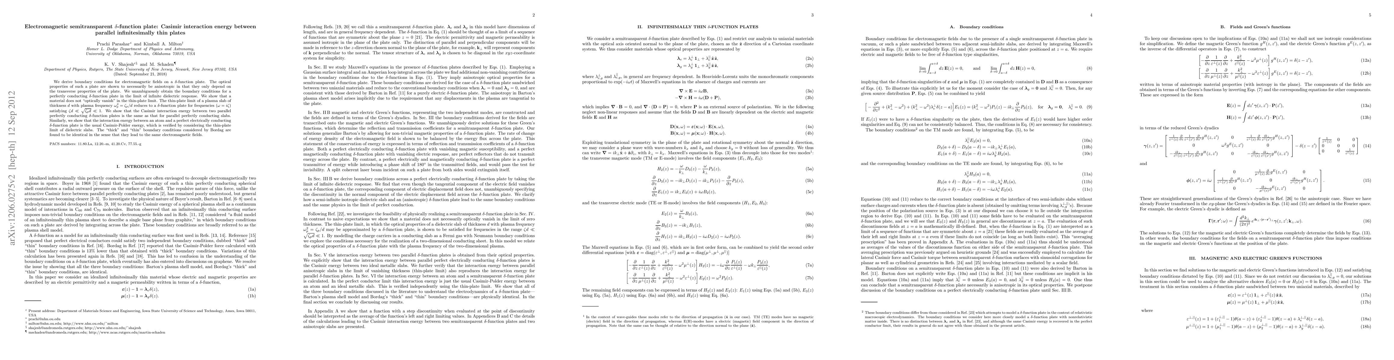 This paper derives boundary conditions for electromagnetic fields on a $\delta$-function plate, demonstrating its anisotropic optical properties and showing that it does not "optically vanish" in the thin-plate limit. It also establishes that the Casimir interaction energy between parallel $\delta$-function plates equals that for parallel slabs, confirming the equivalence of "thick" and "thin" boundary conditions.