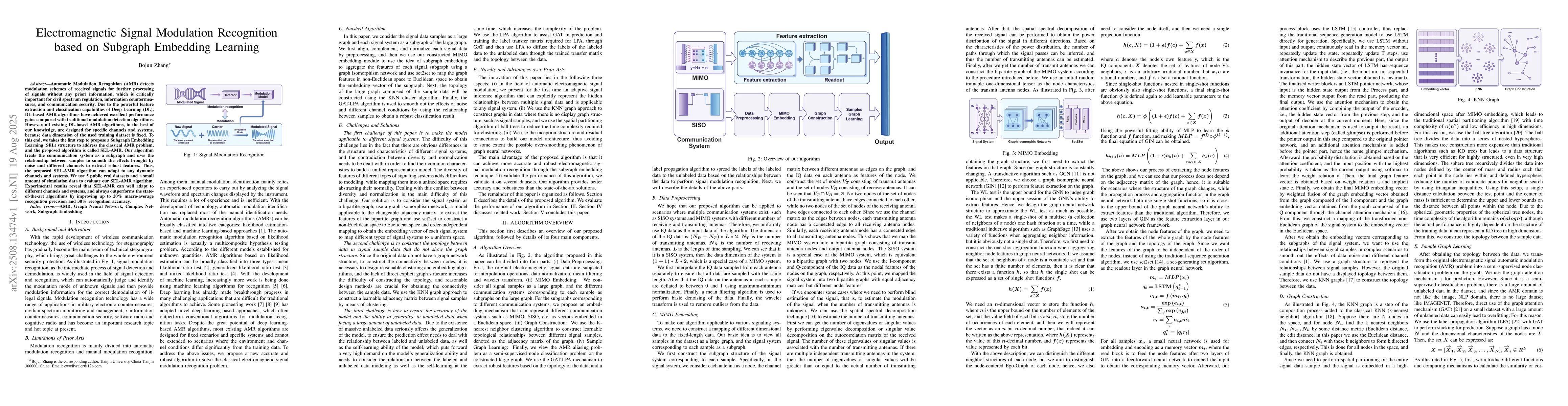 Automatic Modulation Recognition (AMR) detects modulation schemes of received signals for further processing of signals without any priori information, which is critically important for civil spectrum regulation, information countermea sures, and communication security. Due to the powerful feature extraction and classification capabilities of Deep Learning (DL), DL-based AMR algorithms have achieved excellent performance gains compared with traditional modulation detection algorithms. However, all existing DL-based AMR algorithms, to the best of our knowledge, are designed for specific channels and systems, because data dimension of the used training dataset is fixed. To this end, we takes the first step to propose a Subgraph Embedding Learning (SEL) structure to address the classical AMR problem, and the proposed algorithm is called SEL-AMR. Our algorithm treats the communication system as a subgraph and uses the relationship between samples to smooth the effects brought by noise and different channels to extract robust features. Thus, the proposed SEL-AMR algorithm can adapt to any dynamic channels and systems. We use 5 public real datasets and a small amount of simulation data to evaluate our SEL-AMR algorithm. Experimental results reveal that SEL-AMR can well adapt to different channels and systems, and always outperforms the state of-the-art algorithms by improving up to 20% macro-average recognition precision and 30% recognition accuracy.