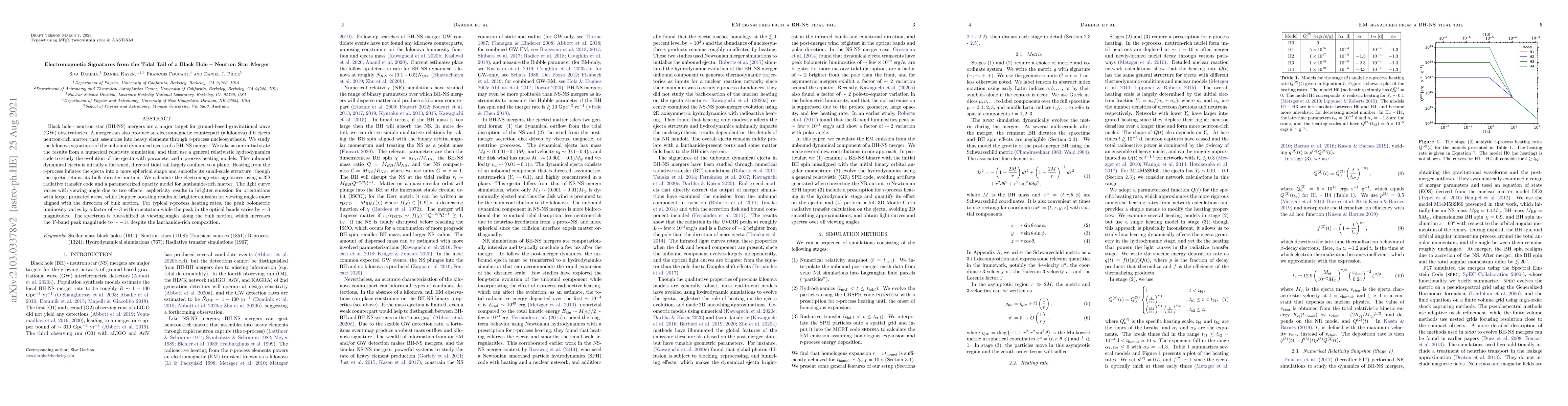 Black hole - neutron star (BH-NS) mergers are a major target for ground-based gravitational wave (GW) observatories. A merger can also produce an electromagnetic counterpart (a kilonova) if it ejects neutron-rich matter that assembles into heavy elements through r-process nucleosynthesis. We study the kilonova signatures of the unbound dynamical ejecta of a BH-NS merger. We take as our initial state the results from a numerical relativity simulation, and then use a general relativistic hydrodynamics code to study the evolution of the ejecta with parameterized r-process heating models. The unbound dynamical ejecta is initially a flattened, directed tidal tail largely confined to a plane. Heating from the r-process inflates the ejecta into a more spherical shape and smooths its small-scale structure, though the ejecta retains its bulk directed motion. We calculate the electromagnetic signatures using a 3D radiative transfer code and a parameterized opacity model for lanthanide-rich matter. The light curve varies with viewing angle due to two effects: asphericity results in brighter emission for orientations with larger projected areas, while Doppler boosting results in brighter emission for viewing angles more aligned with the direction of bulk motion. For typical r-process heating rates, the peak bolometric luminosity varies by a factor of $\sim 3$ with orientation while the peak in the optical bands varies by $\sim 3$ magnitudes. The spectrum is blue-shifted at viewing angles along the bulk motion, which increases the $V$-band peak magnitude to $\sim -14$ despite the lanthanide-rich composition.